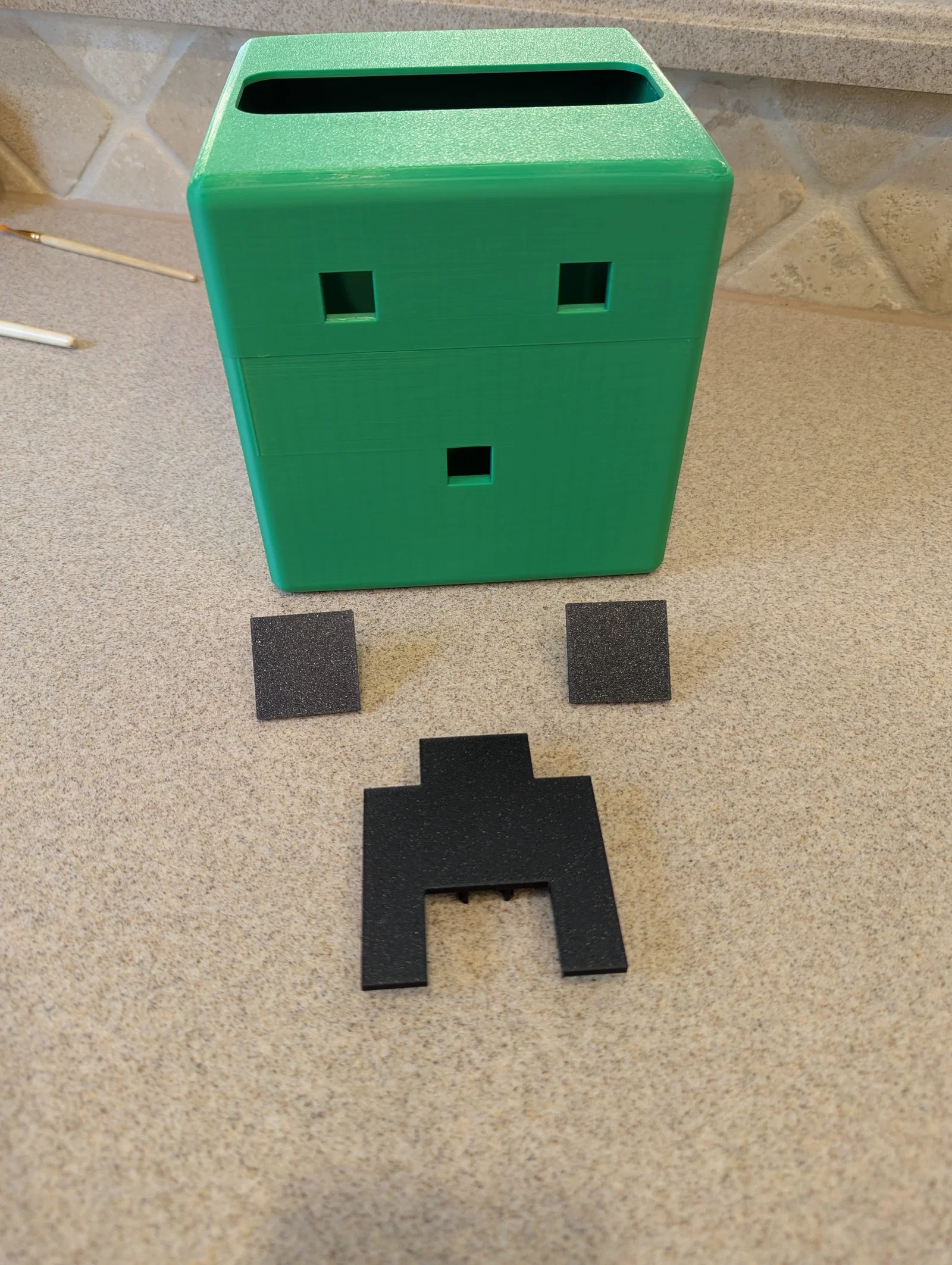 - Lắp ráp: Các mảnh mắt và miệng Creeper có thể được dán bằng keo dán nhựa thông thường. Bạn nên làm sạch bề mặt trước khi dán để đảm bảo các chi tiết không bị bong tróc theo thời gian.