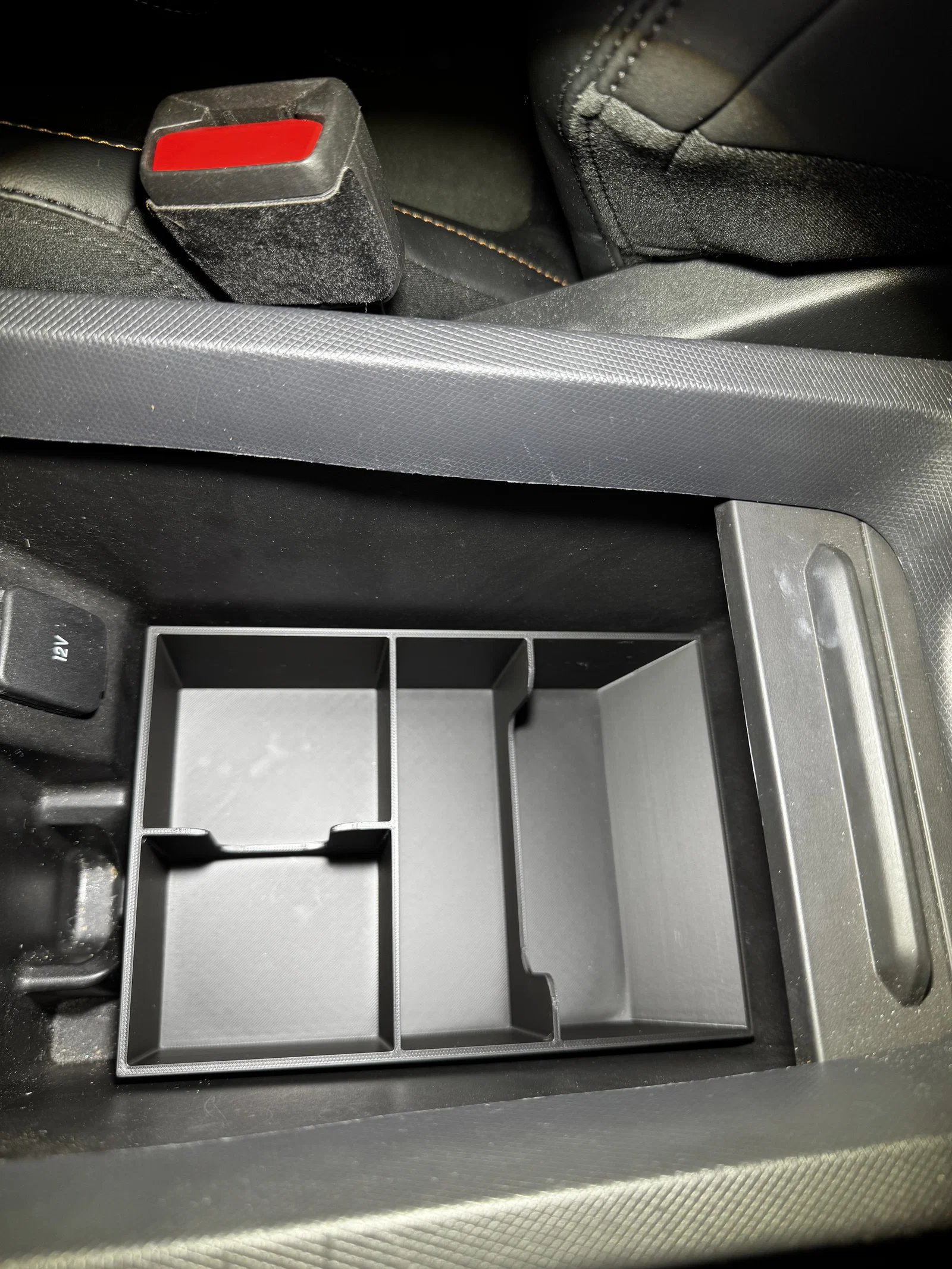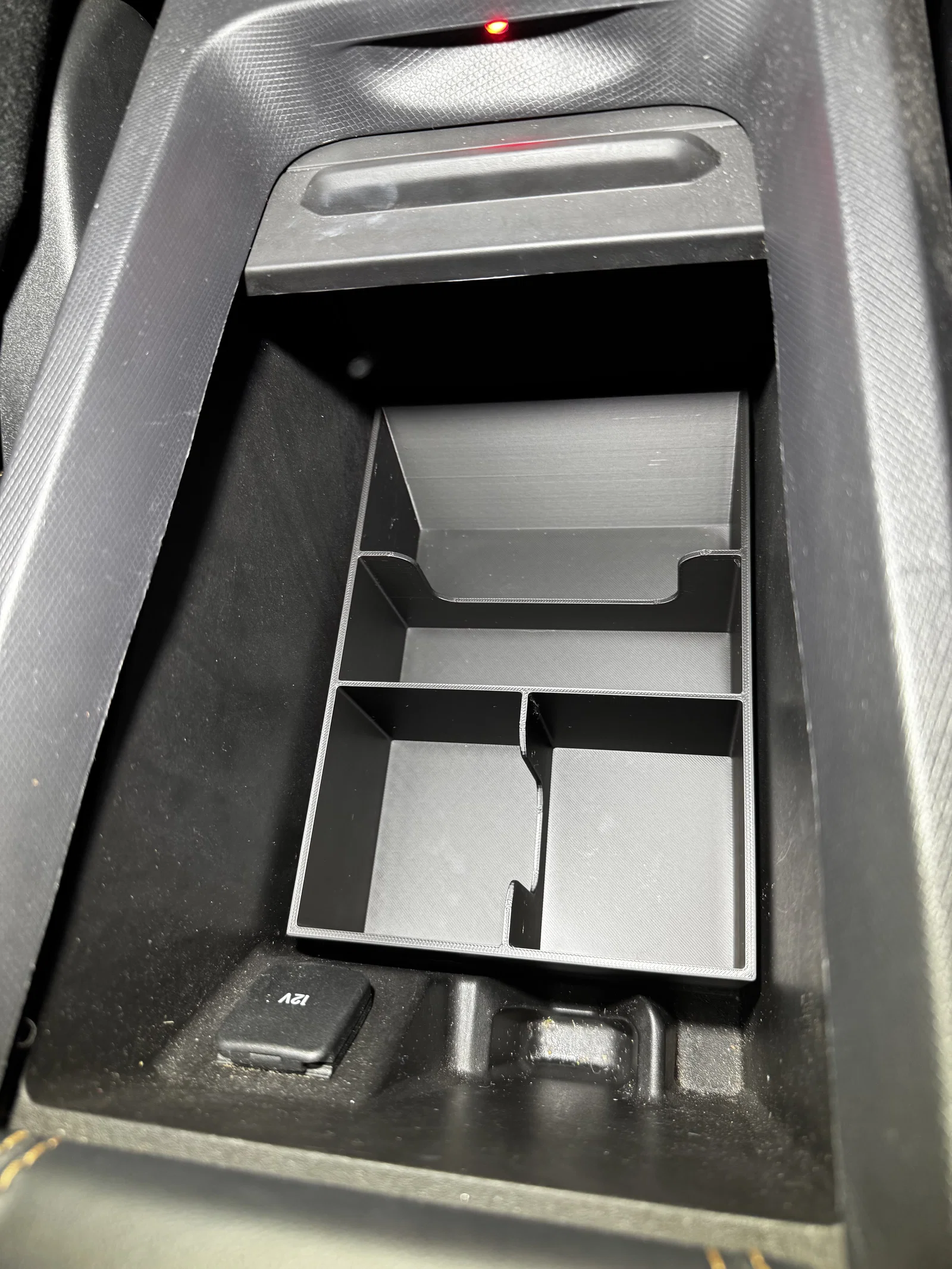 Khay chia ngăn giúp sắp xếp đồ đạc gọn gàng trong bệ trung tâm xe Mustang Mach E. Thiết kế thông minh với 4 ngăn chứa, không cản trở vị trí để chìa khóa và có khe hở giúp dễ lấy đồ. In không cần support, cực kỳ tiện lợi cho xế cưng của bạn.