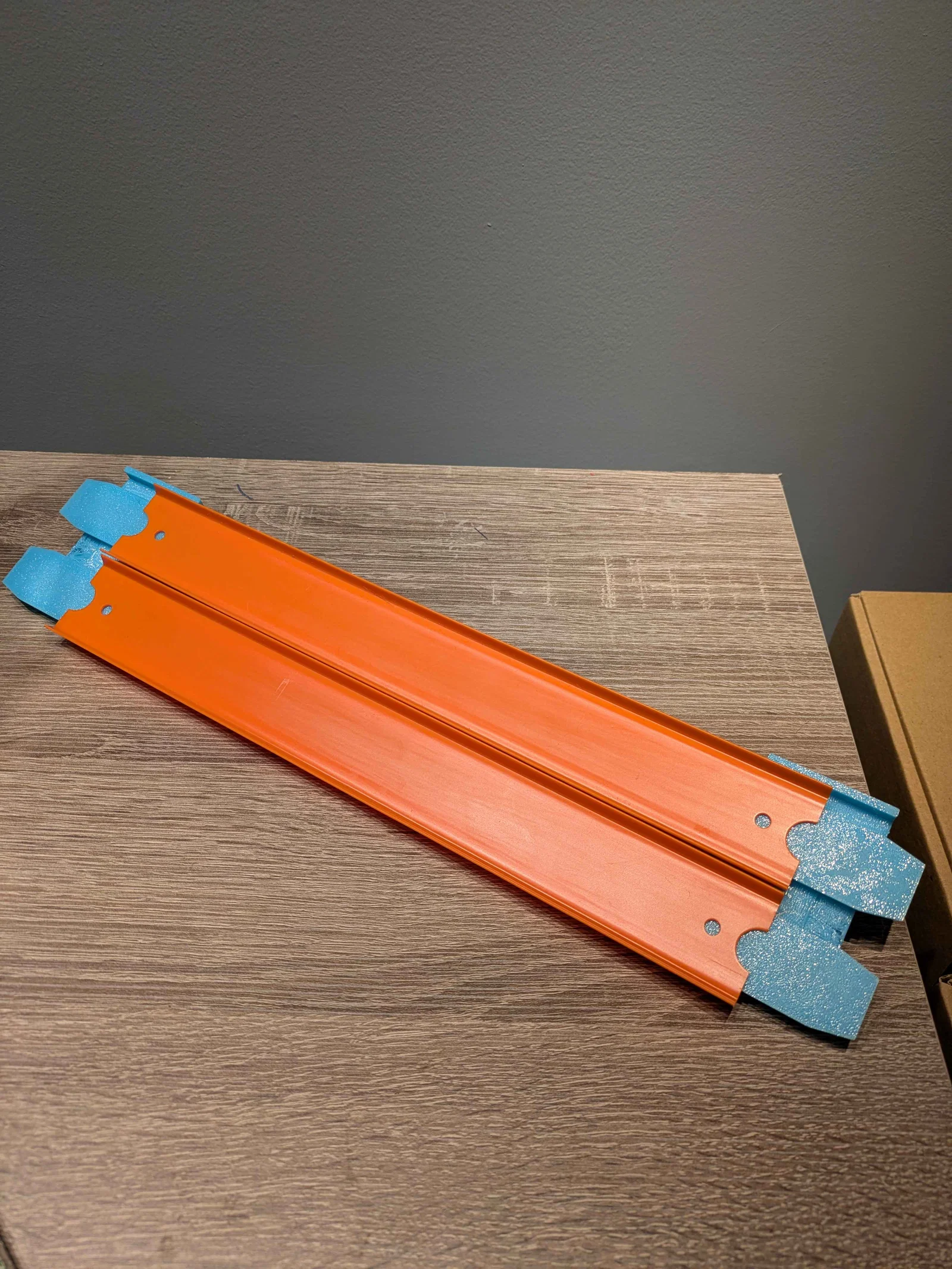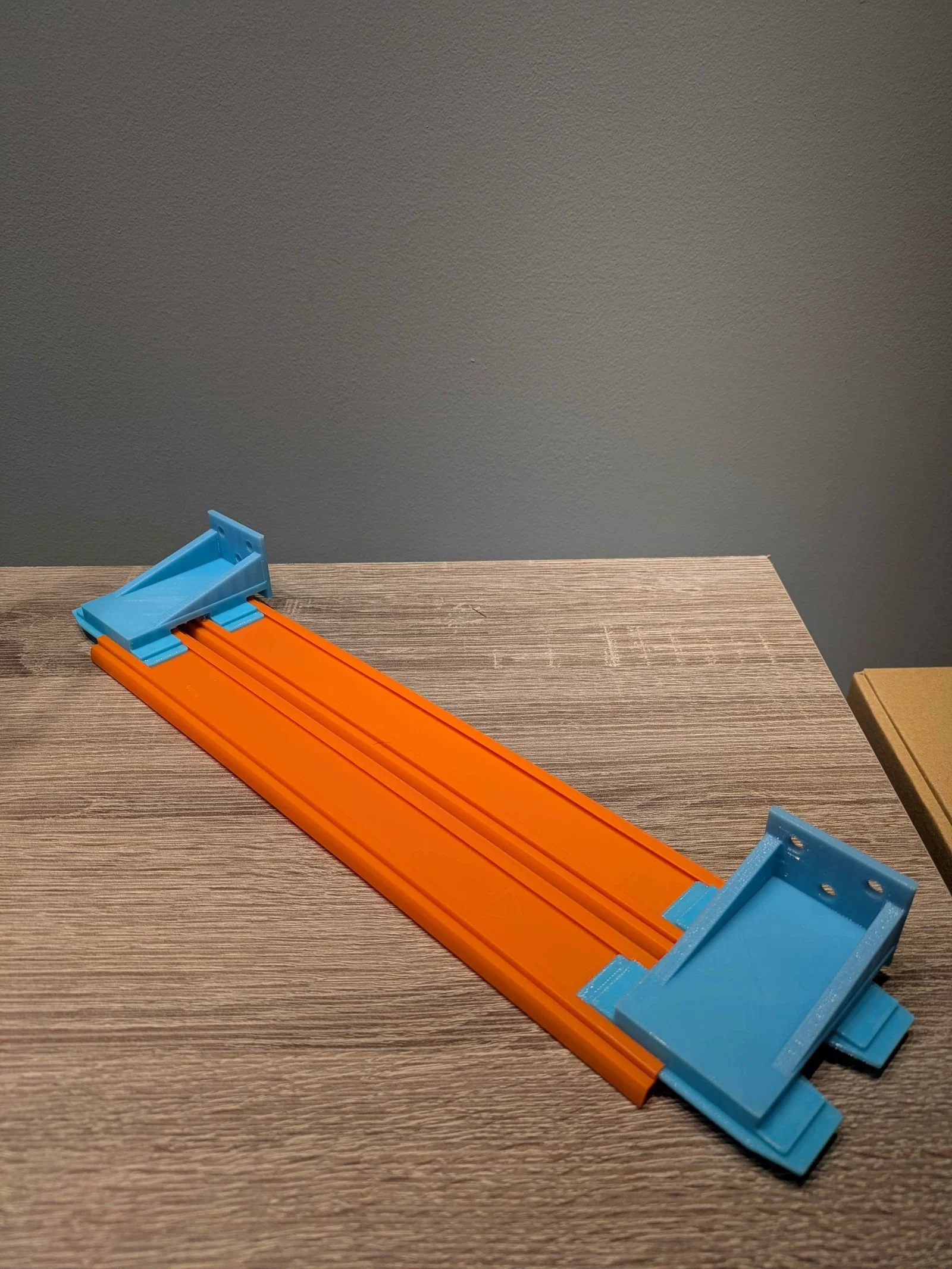 Đây là mẫu giá đỡ được thiết kế riêng giúp bạn gắn hai đường đua Hot Wheels song song lên tường, cực kỳ tiện lợi để trưng bày đường đua, sắp xếp khu vực chơi hoặc tạo các đường đua đối đầu. Sản phẩm có ba lỗ bắt vít để lắp đặt cố định chắc chắn, hoặc bạn cũng có thể dùng băng keo hai mặt nếu muốn lắp đặt linh hoạt hơn.
