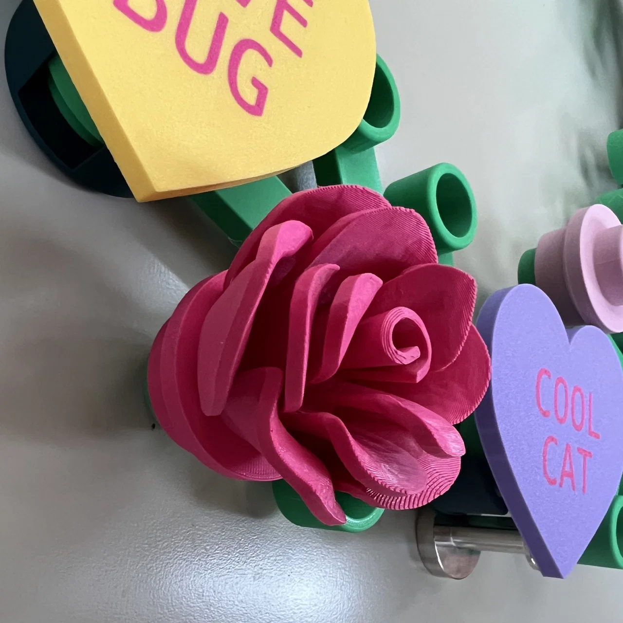 Một mẫu hoa hồng chi tiết được thiết kế để gắn hoàn hảo vào vòng hoa Lego. Bản in này đã được cải tiến phần đế để gắn chắc chắn hơn, không lo bị rơi rớt khi trang trí.