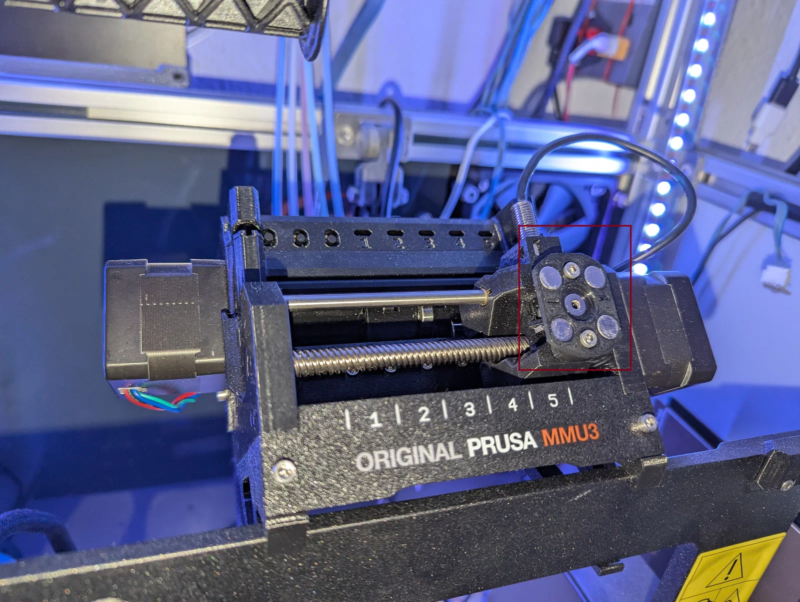 Vì vậy, mình muốn tìm cách để in theo kiểu truyền thống mà không cần thông qua MMU. Đây là giải pháp dùng nam châm của mình, cho phép chuyển đổi nhanh chóng giữa MMU và một cuộn nhựa riêng biệt bên ngoài.