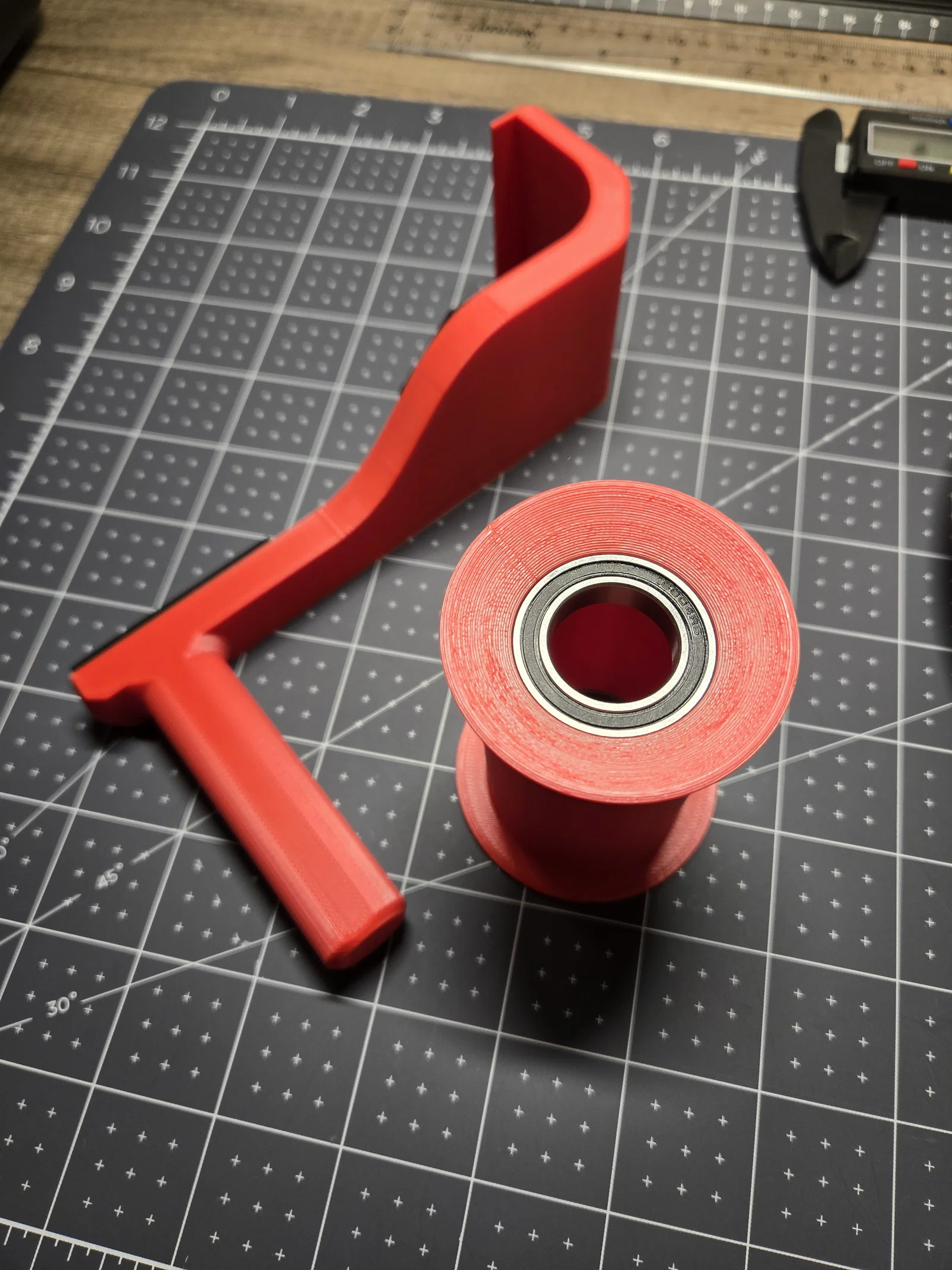 Các vòng bi giúp cuộn chỉ xoay rất mượt mà. Tuy nhiên, mình thấy trong vài trường hợp hiếm hoi, việc xoay quá trơn tru có thể gây ra vấn đề, nên mình đã thiết kế thêm một phiên bản không dùng vòng bi ().
