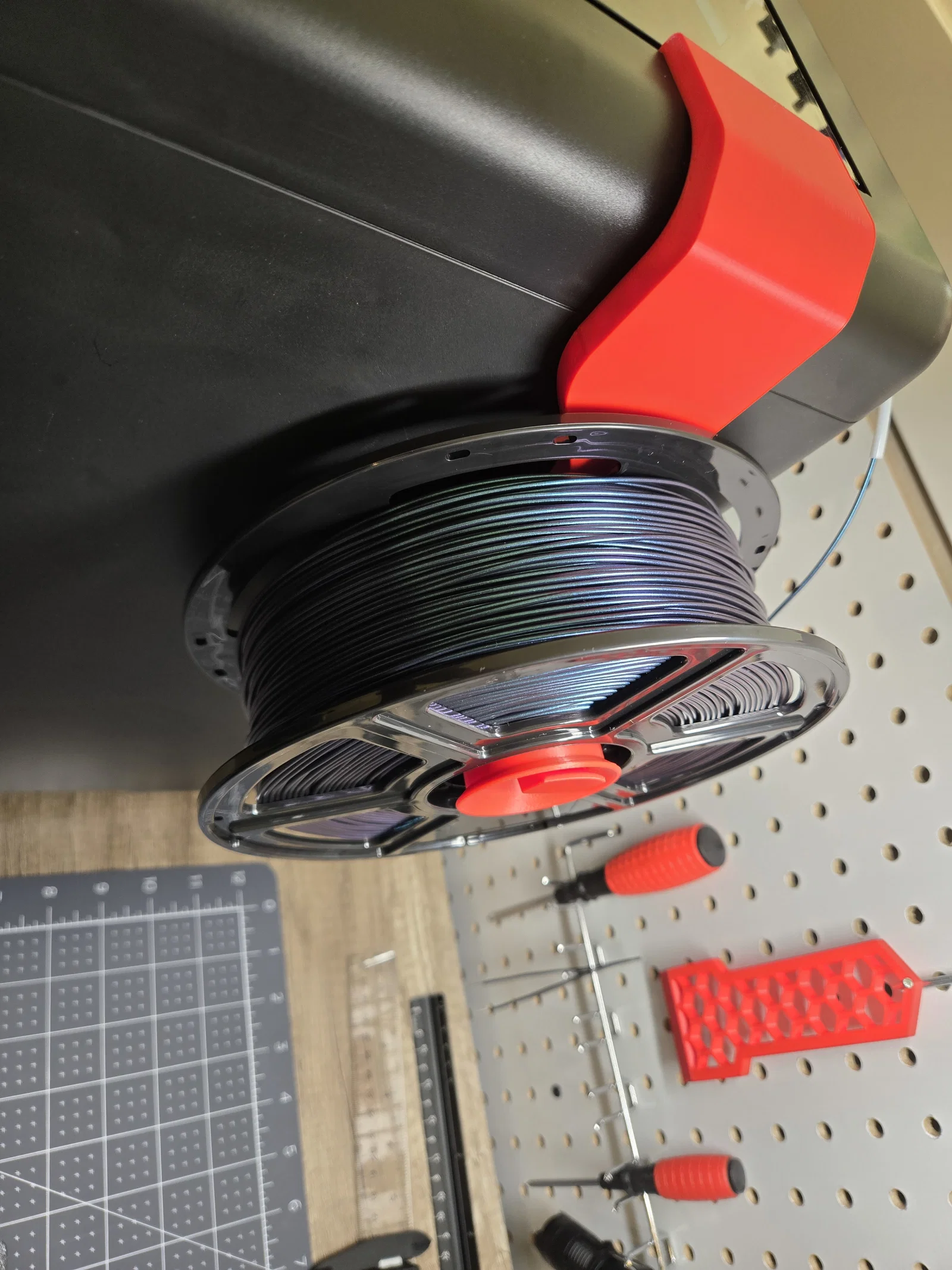 Một thiết kế giá đỡ cuộn nhựa gắn bên hông dễ in cho máy FlashForge Adventurer 5M Pro. Phiên bản này tối ưu hóa độ ma sát mà không cần đến vòng bi, đặc biệt hiệu quả khi sử dụng với các loại cuộn nhựa bìa cứng.