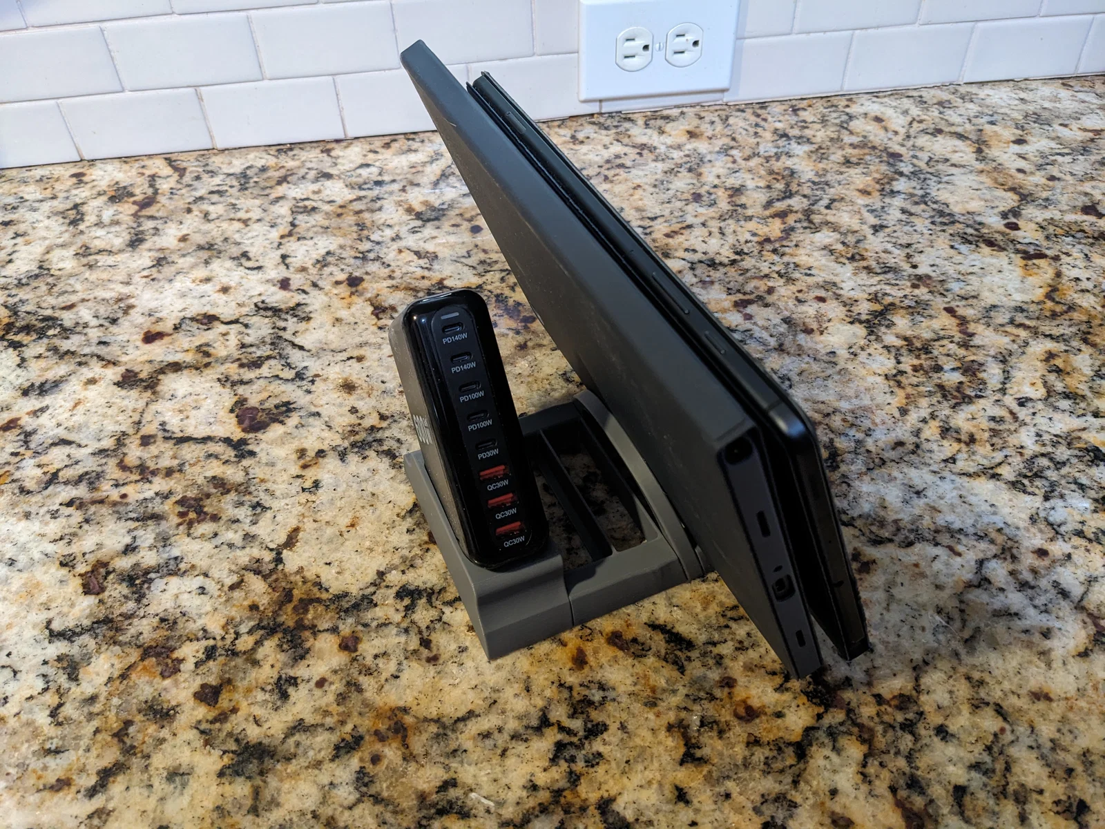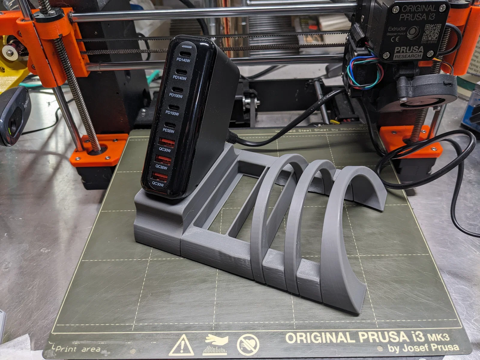 Gần đây mình có mua một cục sạc USB mới, được quảng cáo là "USB C Charger Block 600W 8 Port GaN Fast Charging Station Hub" (xem ảnh). Năm năm trước mình đã làm một cái đế sạc máy tính bảng (xem link remix), và đến giờ mình vẫn đang dùng tốt. Tất nhiên là cục sạc mới này không vừa với cái module cũ, nên mình đã thiết kế một module mới để thay thế.