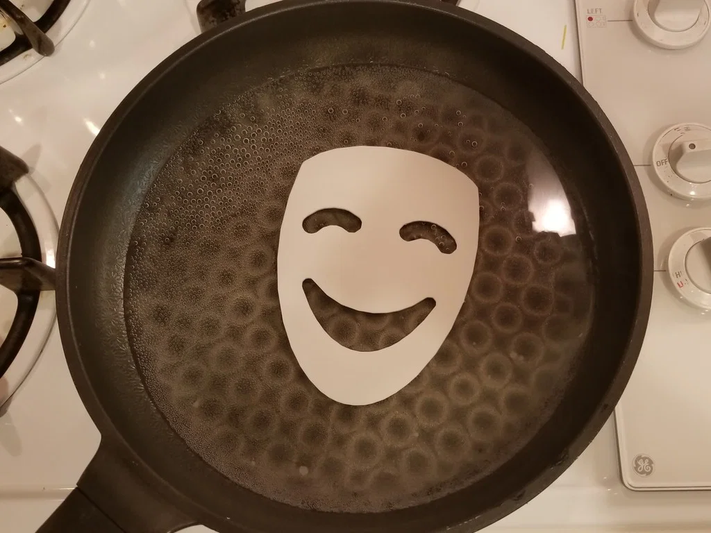 Mình tìm được một tấm ảnh về hai nàng thơ Vui/Buồn trên mạng. Mình đã tách nó ra thành hai gương mặt riêng biệt, tạo thành hai mẫu 3D rồi xuất ra file STL. Mình in 3D các mẫu này ở dạng phẳng bằng nhựa PLA. Sau đó, mình đun nước sôi trong chảo rồi cho các miếng in vào vài giây để nhựa mềm ra. Tiếp theo, mình uốn chúng trên một bề mặt cong để tạo hình như ý muốn. Sau khi để nguội trên bề mặt cong đó, mình đã có được những chiếc mặt nạ để làm quà tặng, sơn vẽ tùy thích hoặc dùng để trang trí.