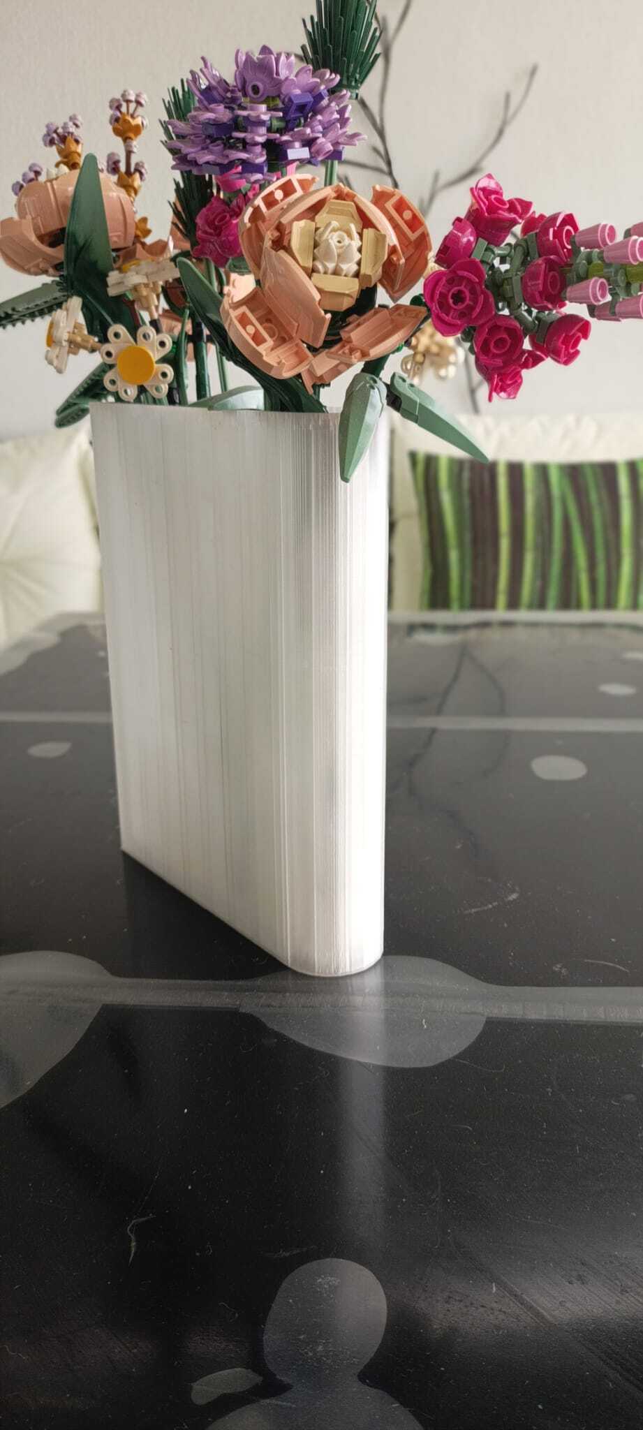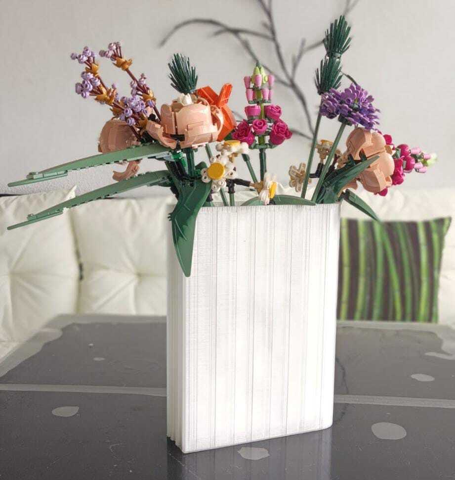 Đặc biệt, mẫu lọ hoa này được tối ưu hóa để in bằng nhựa trong suốt, tạo nên hiệu ứng thị giác vô cùng tinh tế và sang trọng khi đặt dưới ánh sáng. Việc kết hợp lọ hoa này với các loại hoa giả, đặc biệt là các set hoa Lego lắp ráp như trong hình minh họa, sẽ tạo ra một tổng thể decor vô cùng bắt mắt và sáng tạo. Bạn có thể dễ dàng thay đổi các loại hoa theo mùa hoặc theo sở thích để làm mới không gian ngôi nhà mình mỗi ngày.