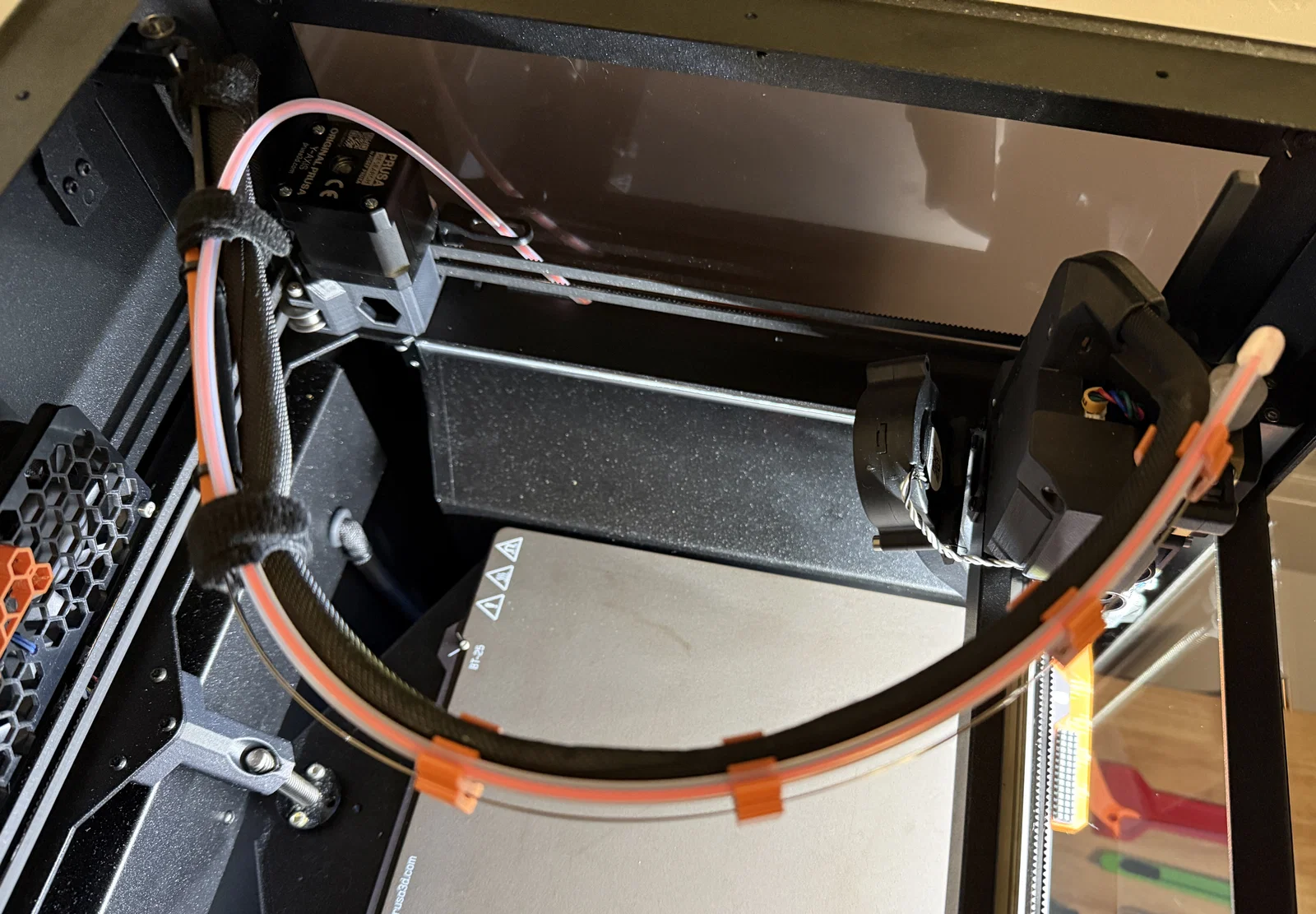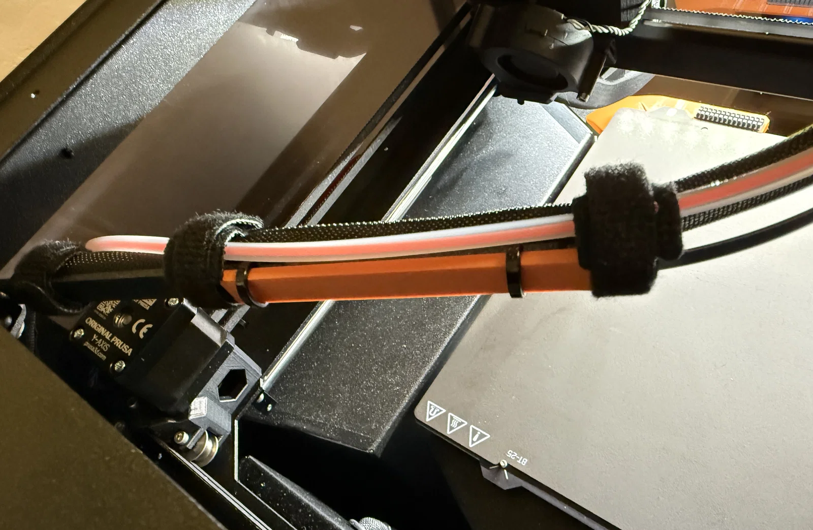 Bản remix kẹp cáp A2 và giá đỡ tay đòn (swing arm) sử dụng dây rút thép không gỉ 300mm. Giải pháp này bền bỉ, dễ in bằng nhựa chịu nhiệt (PCTG/PETG) và không cần sử dụng MMU.