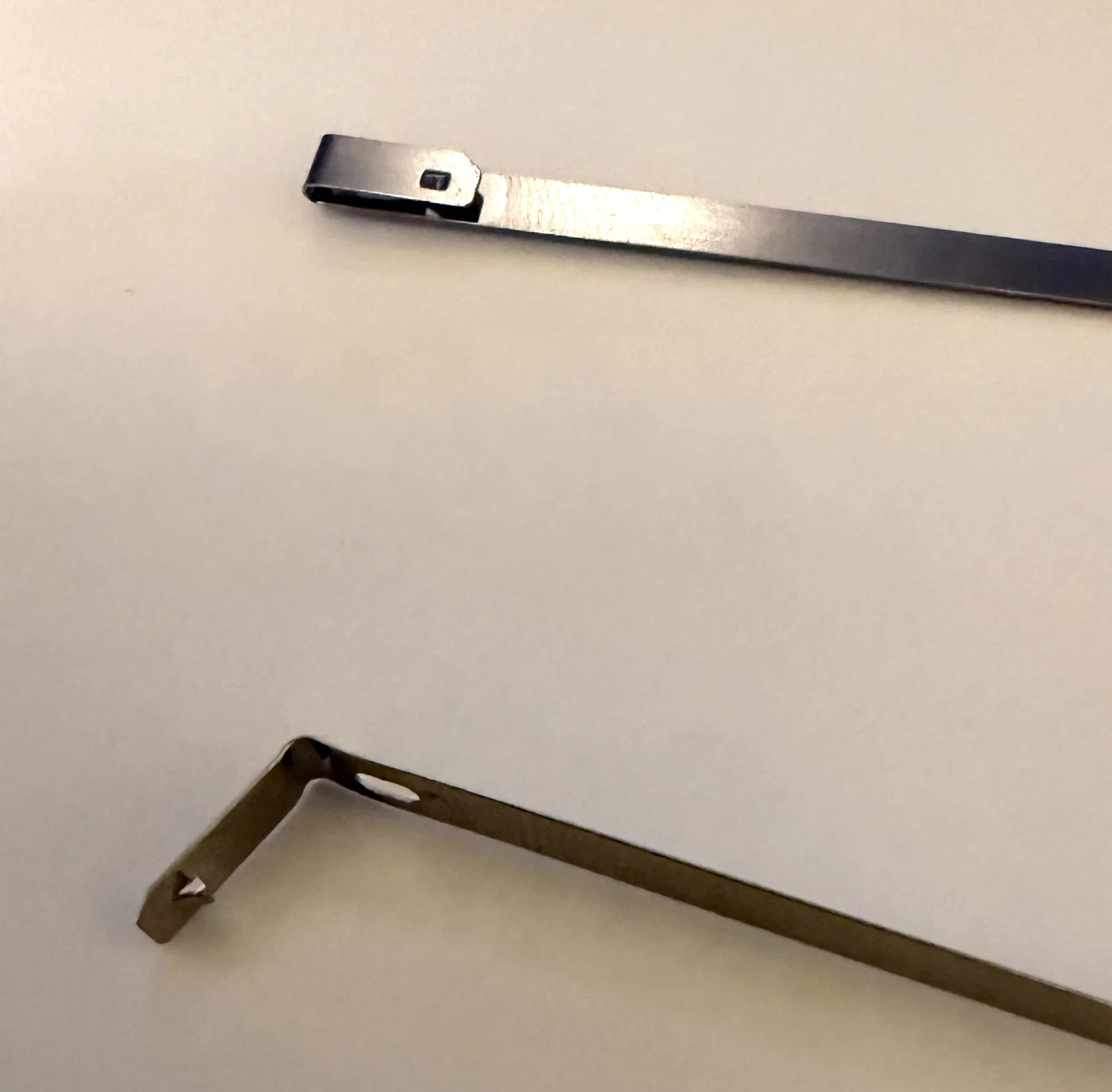 Dựa theo hướng dẫn tuyệt vời của TaiwanWildEggs, mình đã thực hiện một vài thay đổi vì không tìm mua được loại dây rút dài ở địa phương. Mình đã remix lại các khe kẹp cáp A2 để dùng hai dây rút thép không gỉ loại nhỏ hơn, kích thước 300 mm, rộng 4.5 mm và dày 0.25 mm. Ban đầu mình định dùng ba sợi nhưng thấy hai sợi là đã đủ rồi.