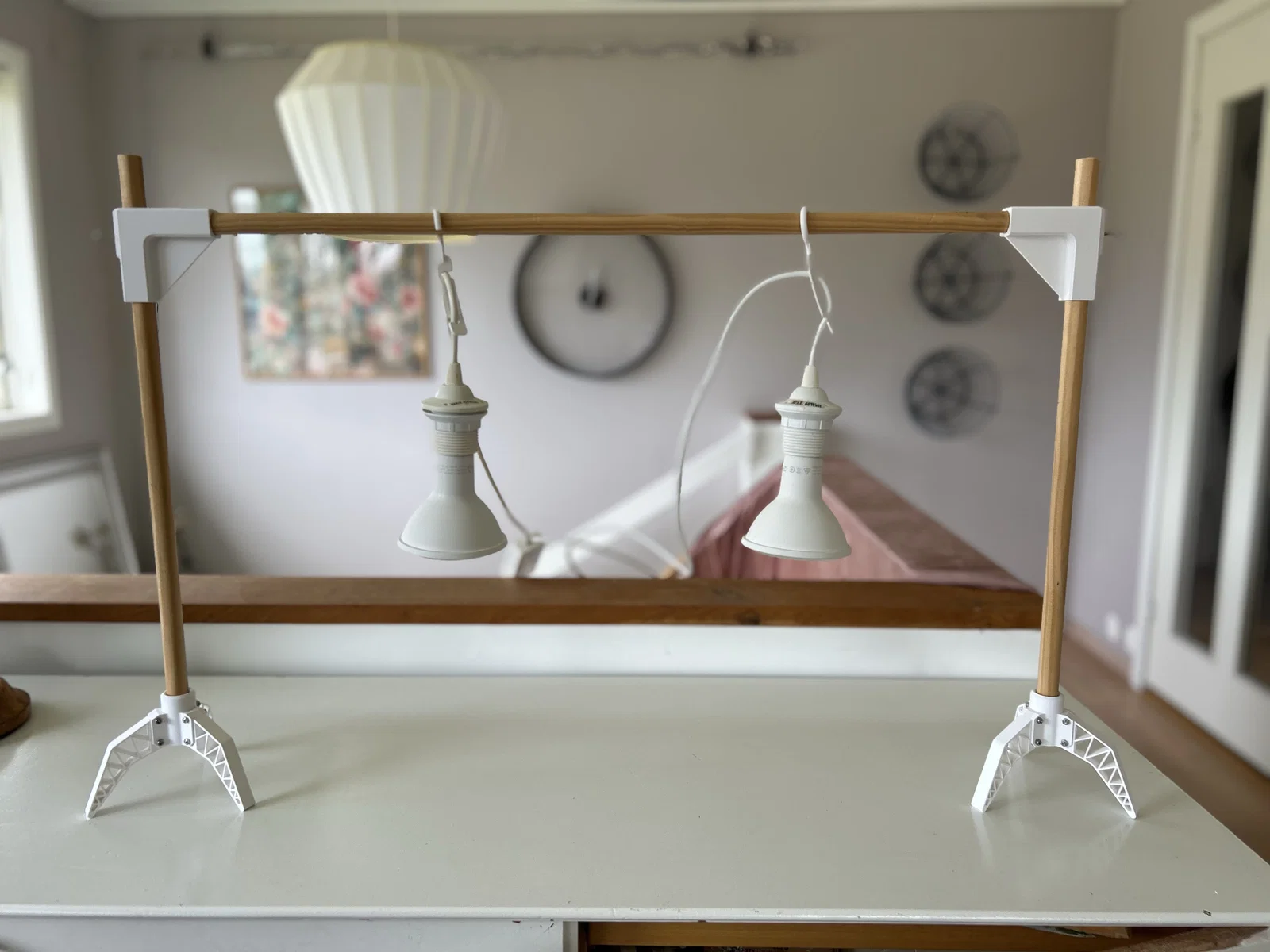 Tôi đã tự thiết kế một chiếc giá để treo cặp đèn trồng cây của IKEA mà tôi đang có sẵn ở nhà.