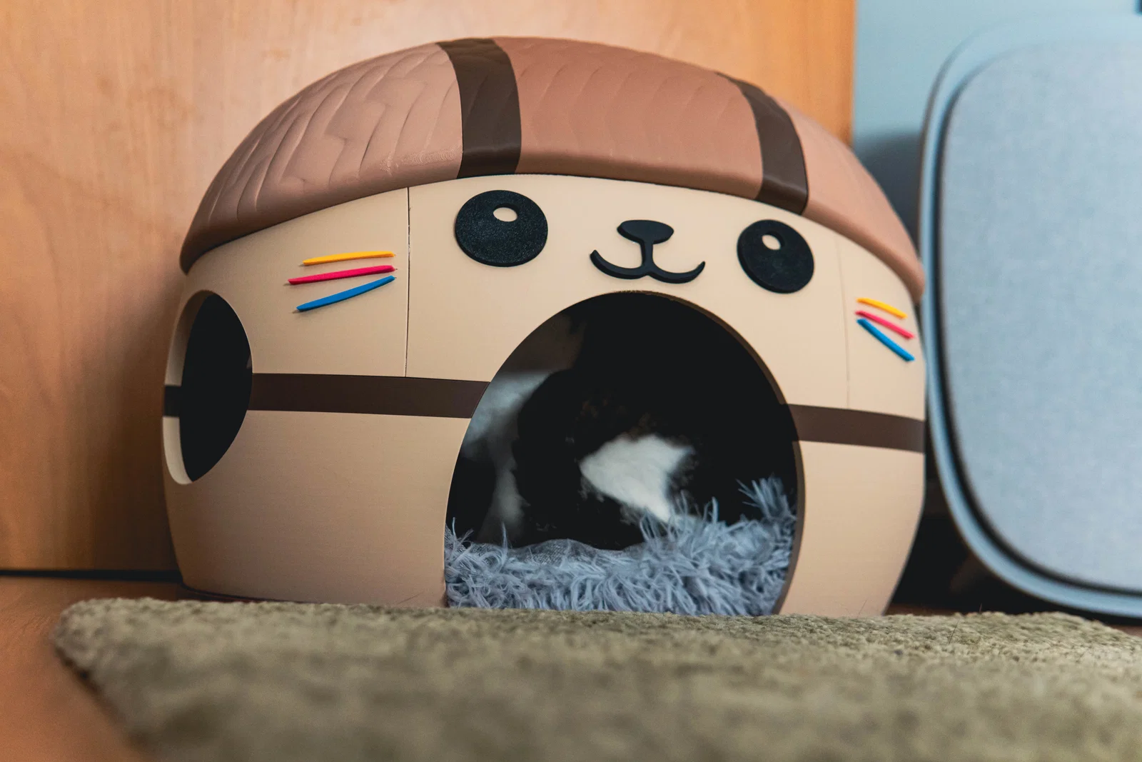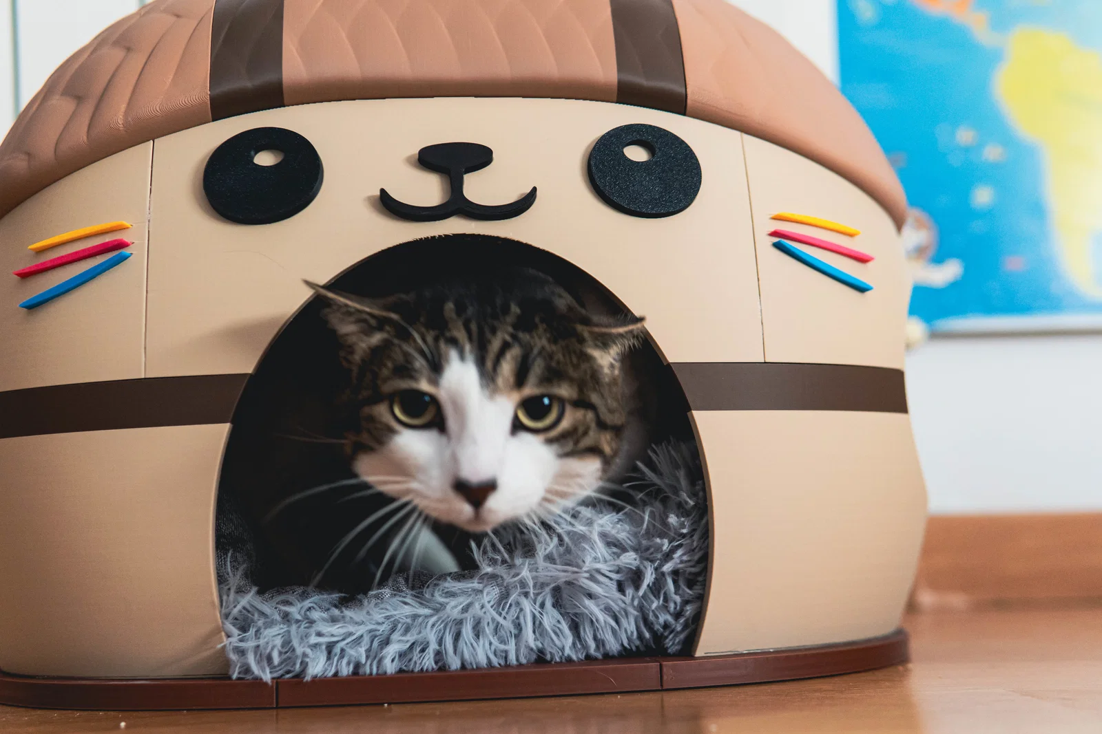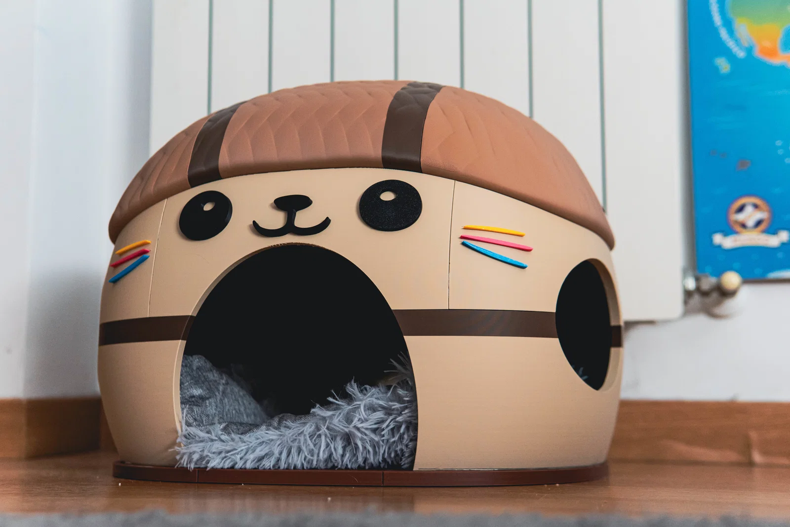 Một ngôi nhà xinh xắn với hình dáng chú mèo Kawai đáng yêu. Ngôi nhà được lắp ráp bằng các chốt lục giác (hex pins) và keo resin hai thành phần (đừng dùng keo 502, bạn sẽ gặp rắc rối lớn đấy... đừng hỏi vì sao mình biết).