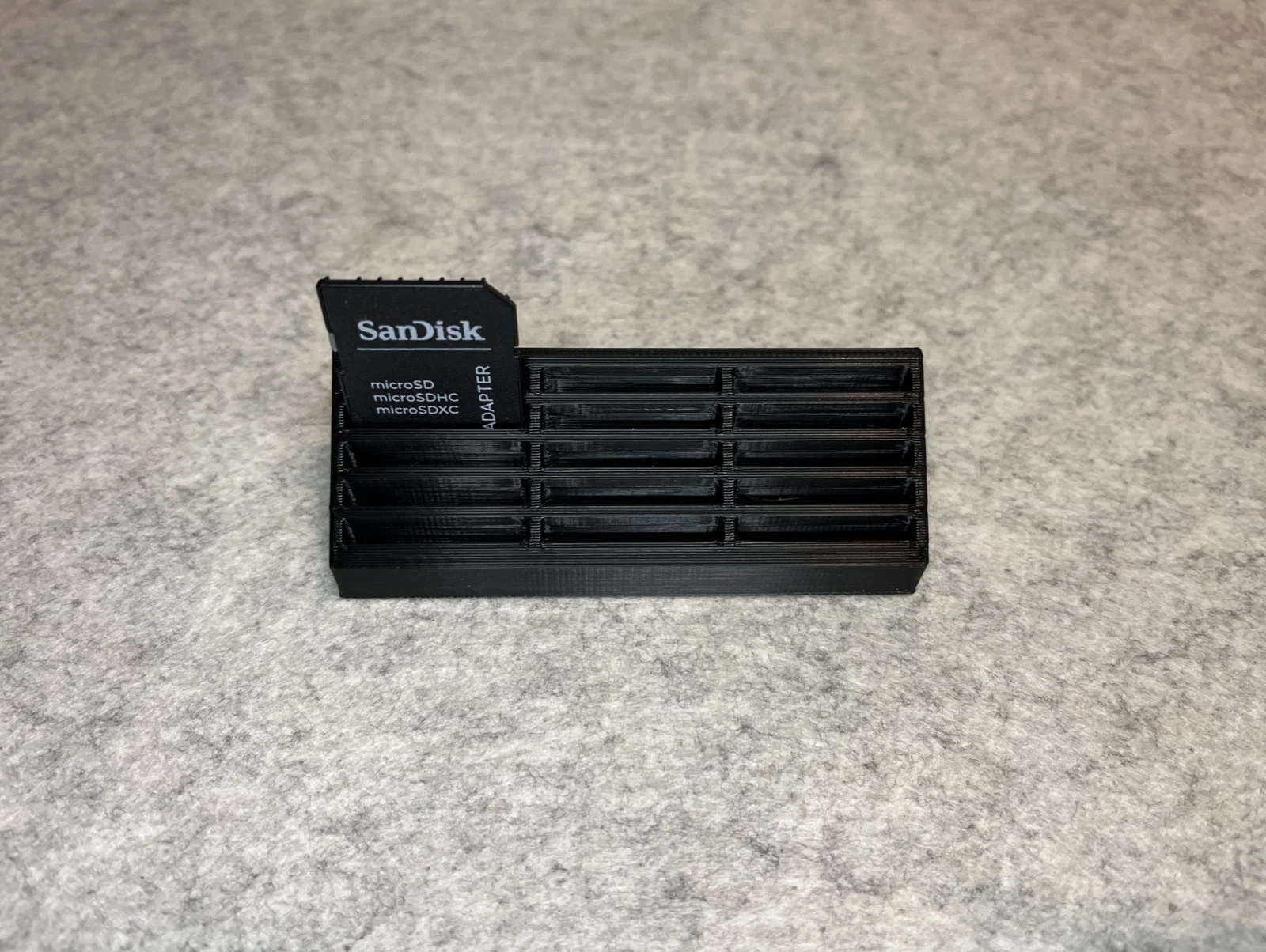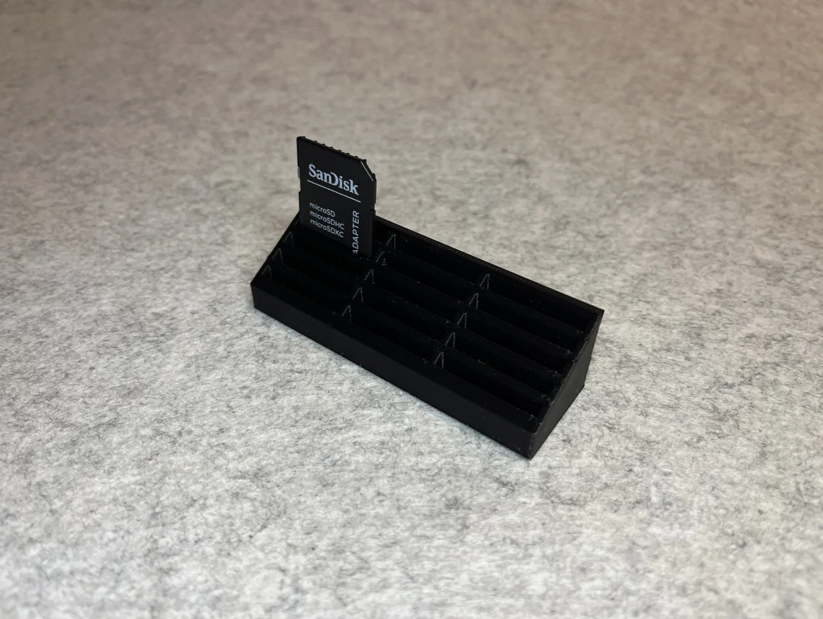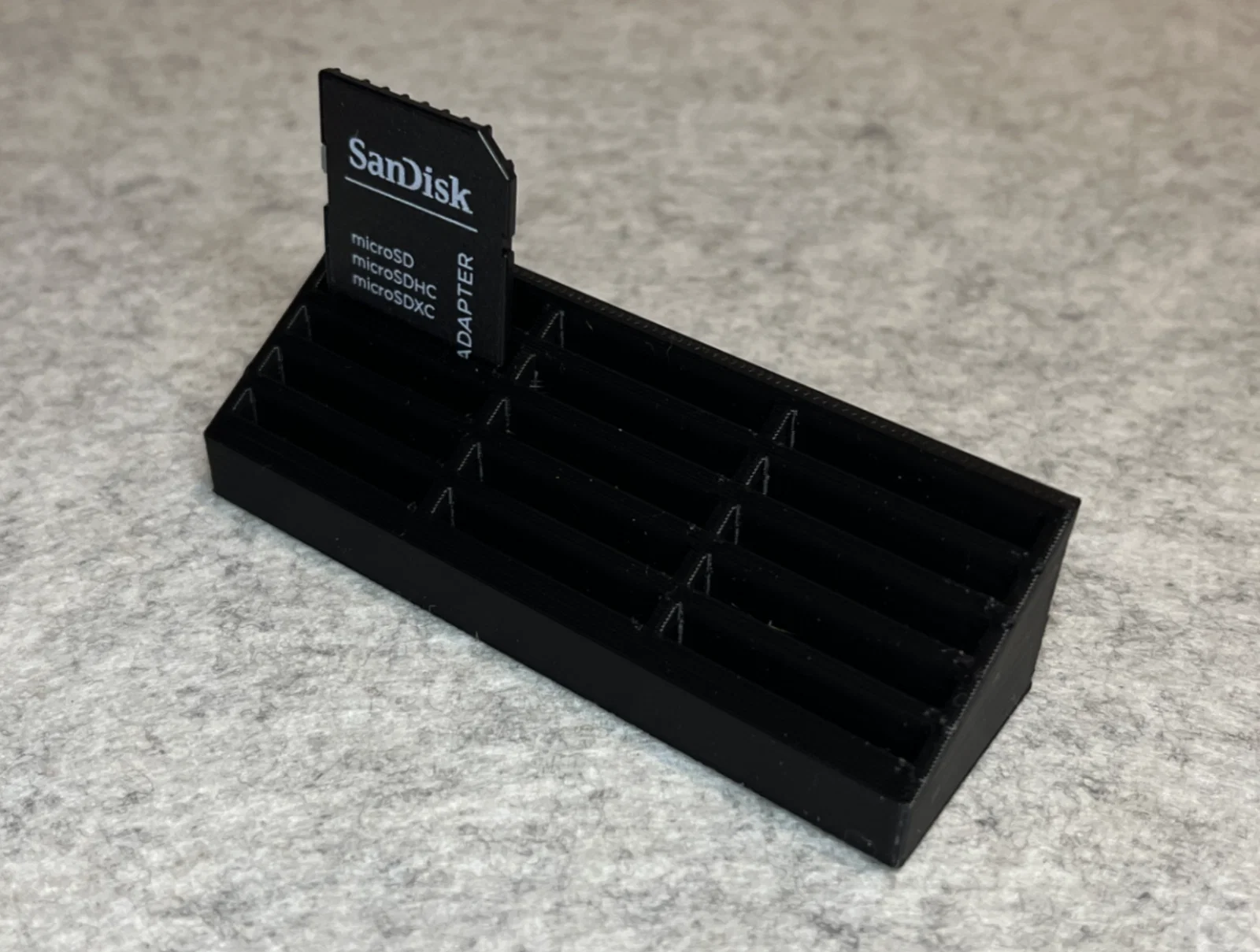 • Lưu ý sử dụng: Hãy đảm bảo bàn in của bạn đã được cân chỉnh tốt để các ngăn nhỏ không bị hiện tượng bong tróc góc. Khi in xong, hãy vệ sinh sạch sẽ các ba via nhựa thừa để thẻ SD lọt vào khe một cách mượt mà nhất.