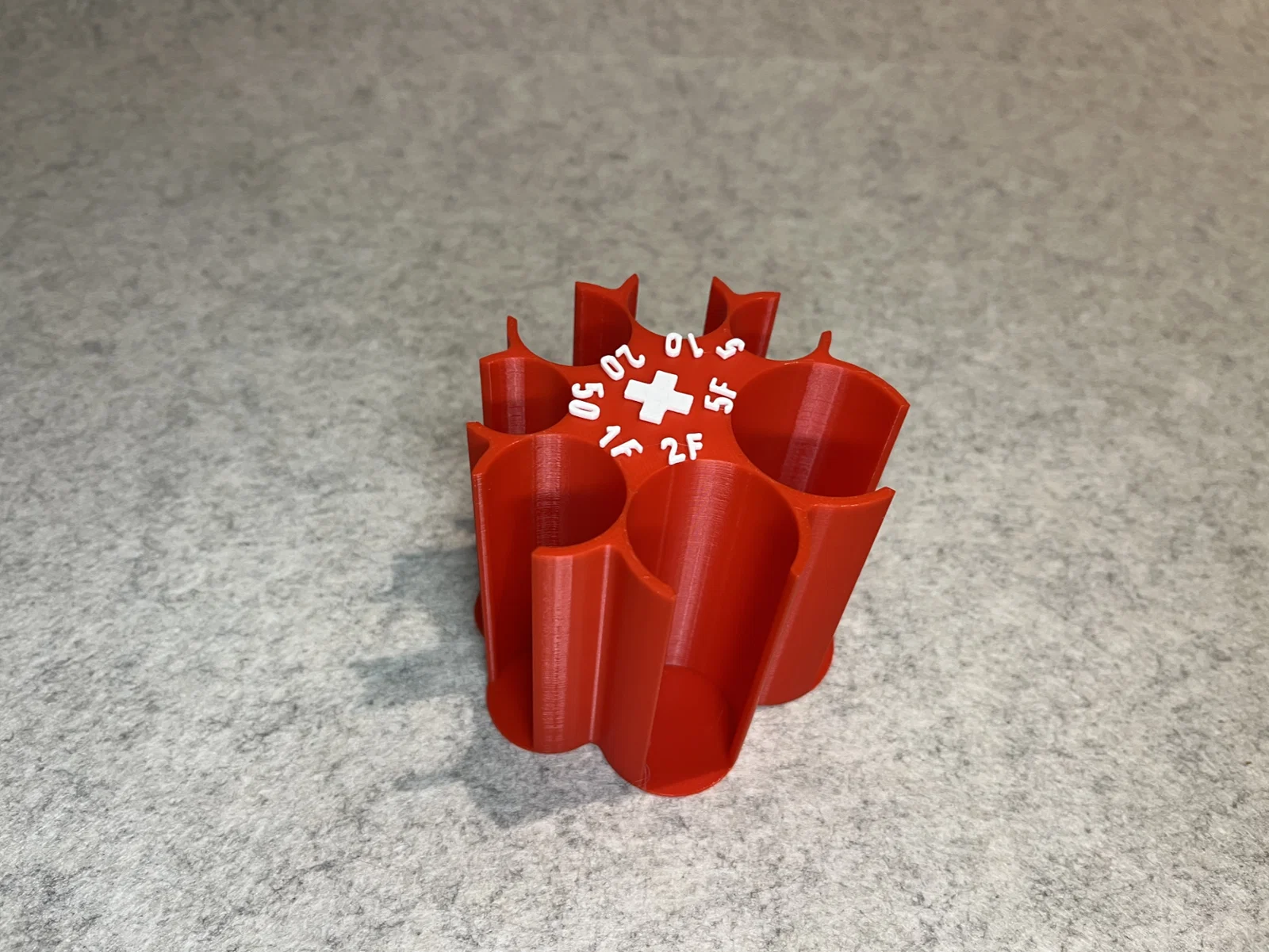 Khay phân loại tiền xu Thụy Sĩ (Swiss Franc coin sorter) in 3D