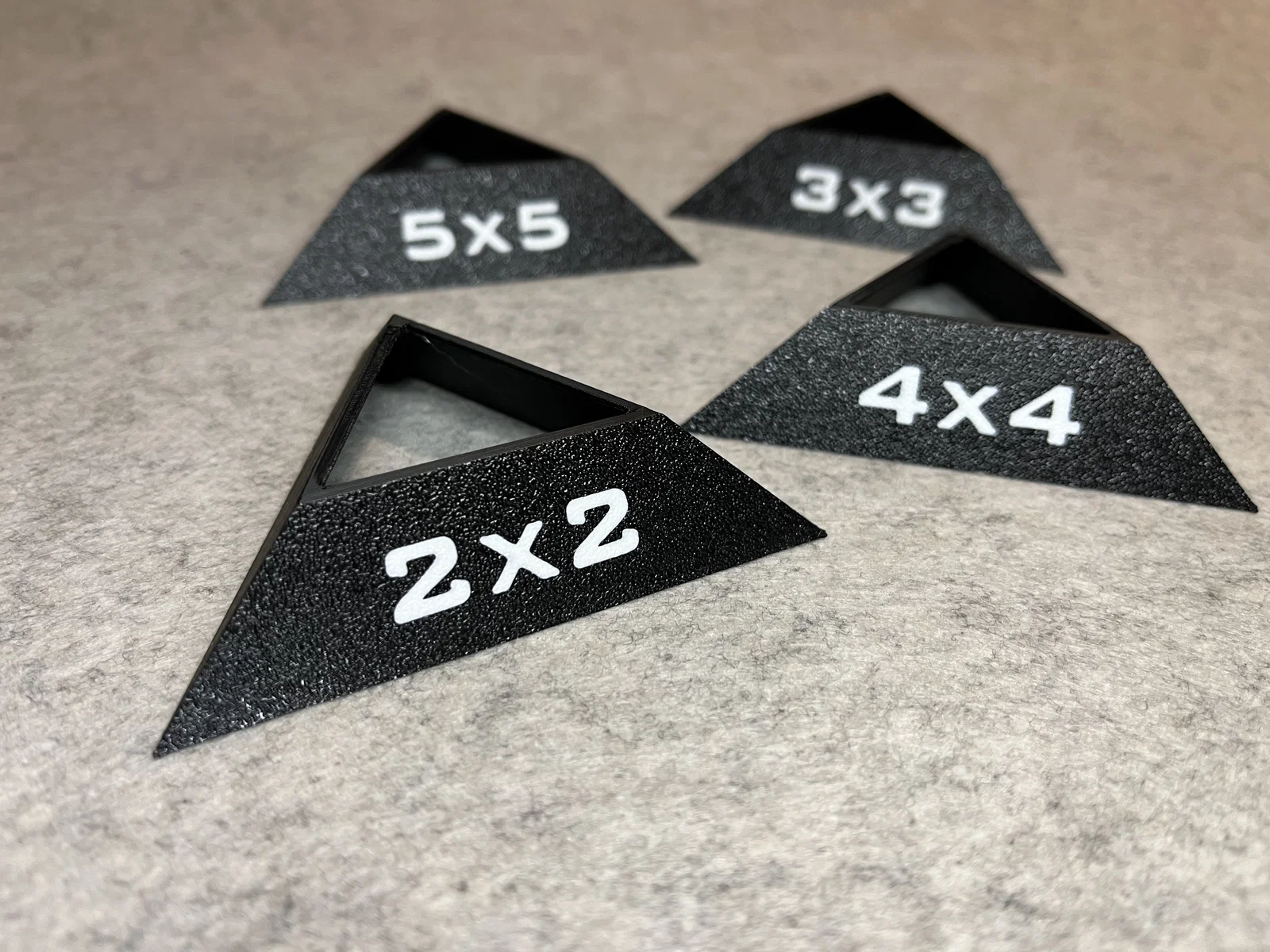 Việc in 3D những chiếc đế này cũng rất đơn giản và không tốn nhiều nhựa. Với thiết kế dạng hình thang rỗng, bạn có thể dễ dàng đặt khối Rubik lên trên mà không sợ bị trượt. Đặc biệt, nếu bạn muốn cá nhân hóa không gian trưng bày, phiên bản có in chữ số kích thước (như 3x3, 5x5...) sẽ giúp người xem dễ dàng phân biệt các loại Rubik khác nhau trong bộ sưu tập của bạn. Đây không chỉ là món phụ kiện hỗ trợ mà còn là điểm nhấn trang trí tinh tế cho góc học tập hay bàn làm việc của những người yêu thích các trò chơi trí tuệ.