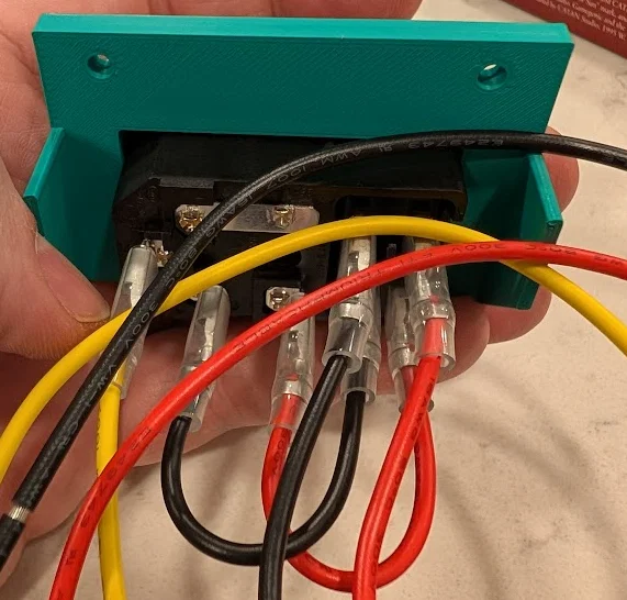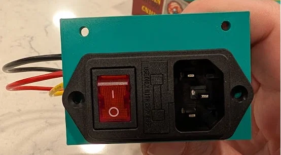 Giá đỡ dùng để gắn ổ cắm nguồn có công tắc và cầu chì tiêu chuẩn vào phần khung dưới của máy in 3D Rook MK2 của Rolohaun.
