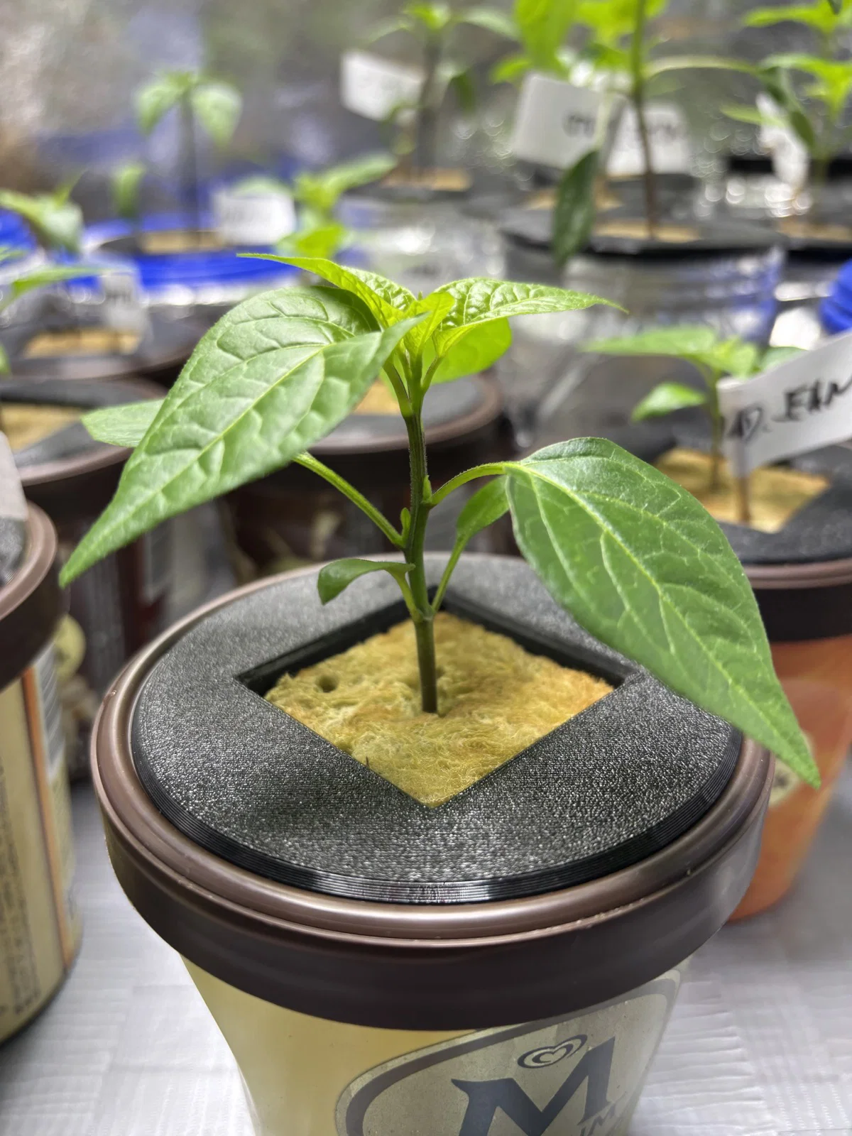 Cái rọ thủy canh (netpot) in 3D đường kính Ø8 cm này được thiết kế chuyên biệt cho các khối rockwool 4×4×4 cm.