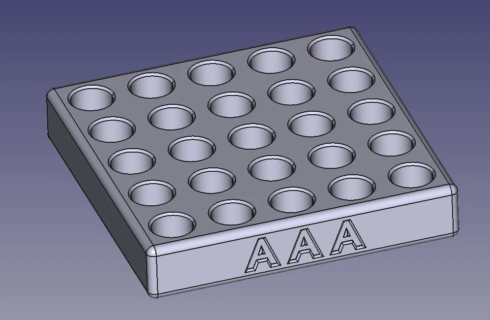 Mẫu khay đựng pin AA và AAA dạng mô-đun (modular) tiện lợi, giúp bạn sắp xếp pin ngăn nắp hơn. Hiện có sẵn một số mẫu miễn phí để bạn trải nghiệm in ấn ngay.