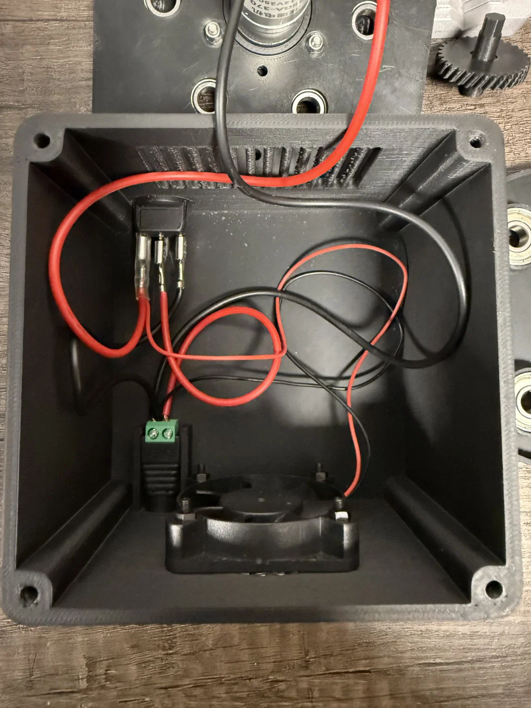 Mình cập nhật thiết kế để dùng được bộ chuyển đổi motor (adapter) dạng module. Bạn có thể sửa file CAD, in và test thoải mái mà không cần in lại toàn bộ tấm đế hộp số. Mình không tìm được motor 37mm, nhưng lại có motor 26mm tốc độ 250RPM nên thiết kế này dành cho motor đường kính 26mm.