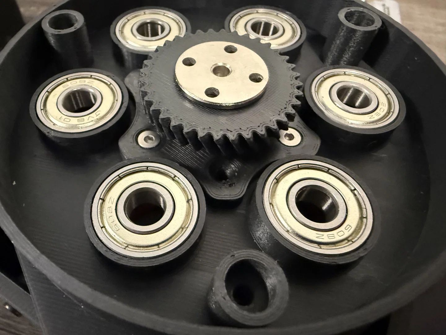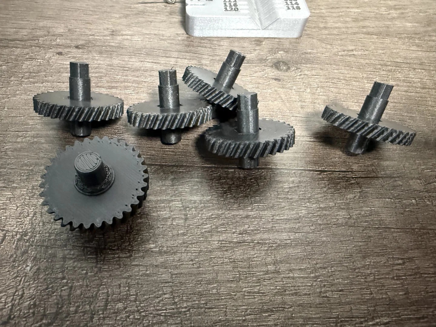 Mình cảm thấy nếu in trục bánh răng và bánh răng bằng ABS, ASA hoặc PETG thì tốt hơn - vật liệu bền hơn PLA, nhưng mình sẽ thử xem PLA trụ được bao lâu. Độ bám dính lớp là yếu tố sống còn cho các trục bánh răng nên mình mới chọn 100% infill. Khi in 100% mình dùng tay không thể bẻ gãy được, nhưng ở mức 25% infill thì chúng gãy khá dễ.