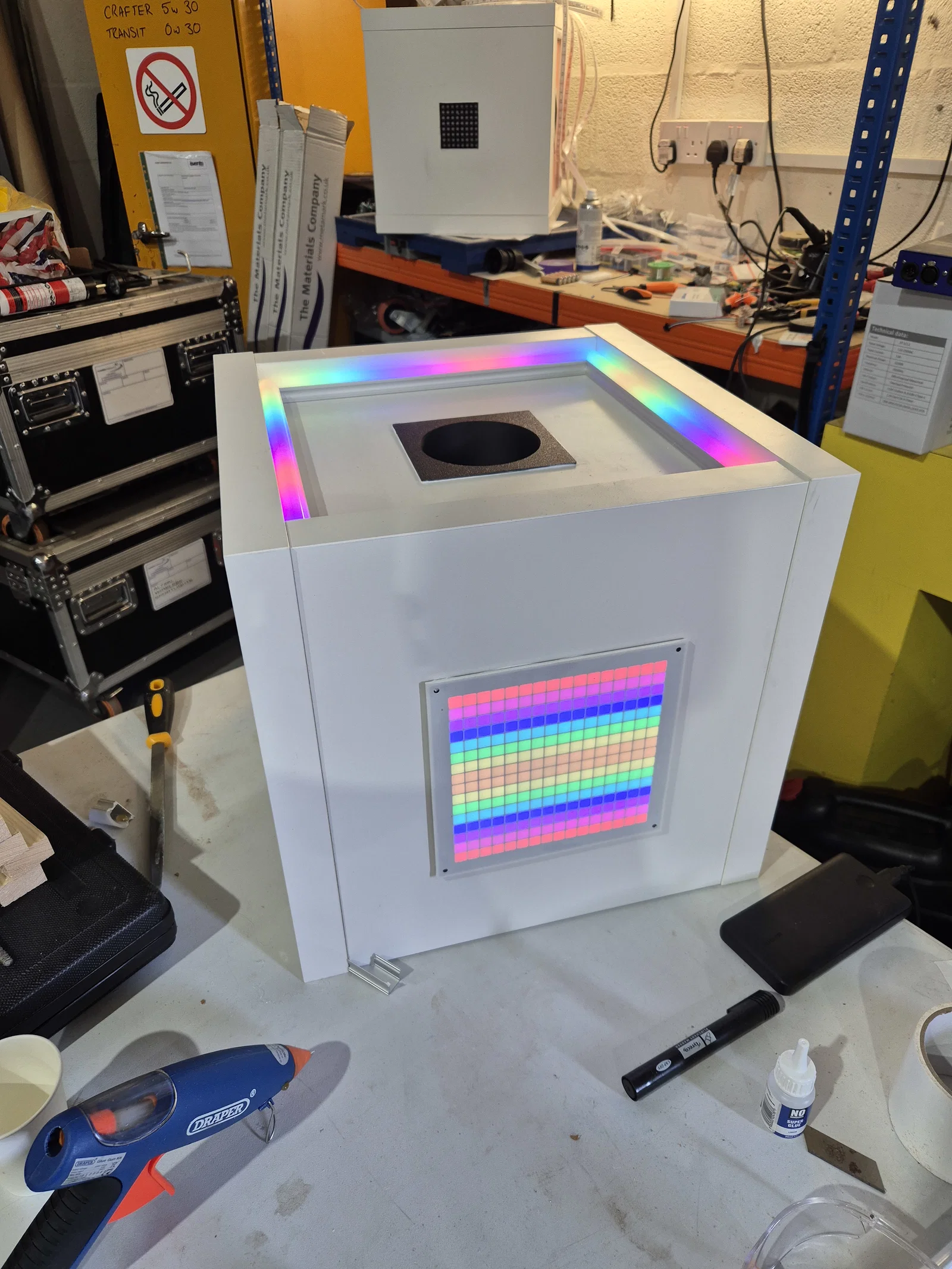 Cấu trúc của trò chơi bao gồm các phần khung được in 3D vững chãi, tạo nên một hộp chứa thiết bị gọn gàng và thẩm mỹ. Các dải đèn WLED được tích hợp khéo léo xung quanh bề mặt chơi, tạo hiệu ứng thị giác cực kỳ bắt mắt khi quả bóng di chuyển. Bên cạnh đó, mặt trước của hộp được trang bị màn hình hiển thị để theo dõi điểm số, giúp trải nghiệm chơi game trở nên chuyên nghiệp và kịch tính hơn rất nhiều. Thiết bị này không chỉ là một trò chơi mà còn là một tác phẩm trang trí công nghệ cao tuyệt vời cho góc làm việc của bạn.