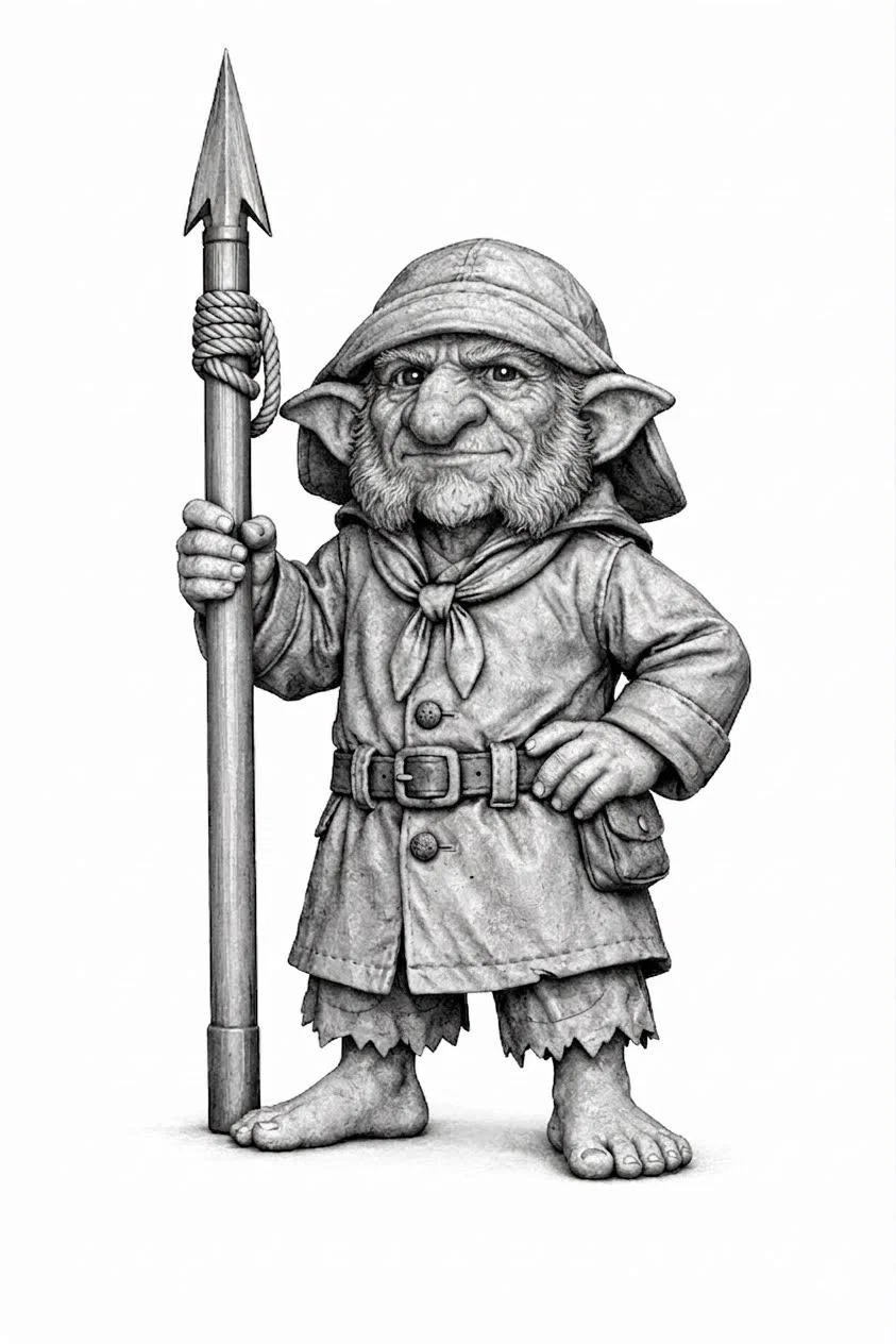 Gặp gỡ chú yêu tinh thủy thủ với chiếc áo mưa đặc trưng và cây lao móc sắc bén. Đây là một mô hình chi tiết, dễ in, cực kỳ phù hợp để trang trí cho không gian sống của bạn thêm phần sinh động và cá tính.