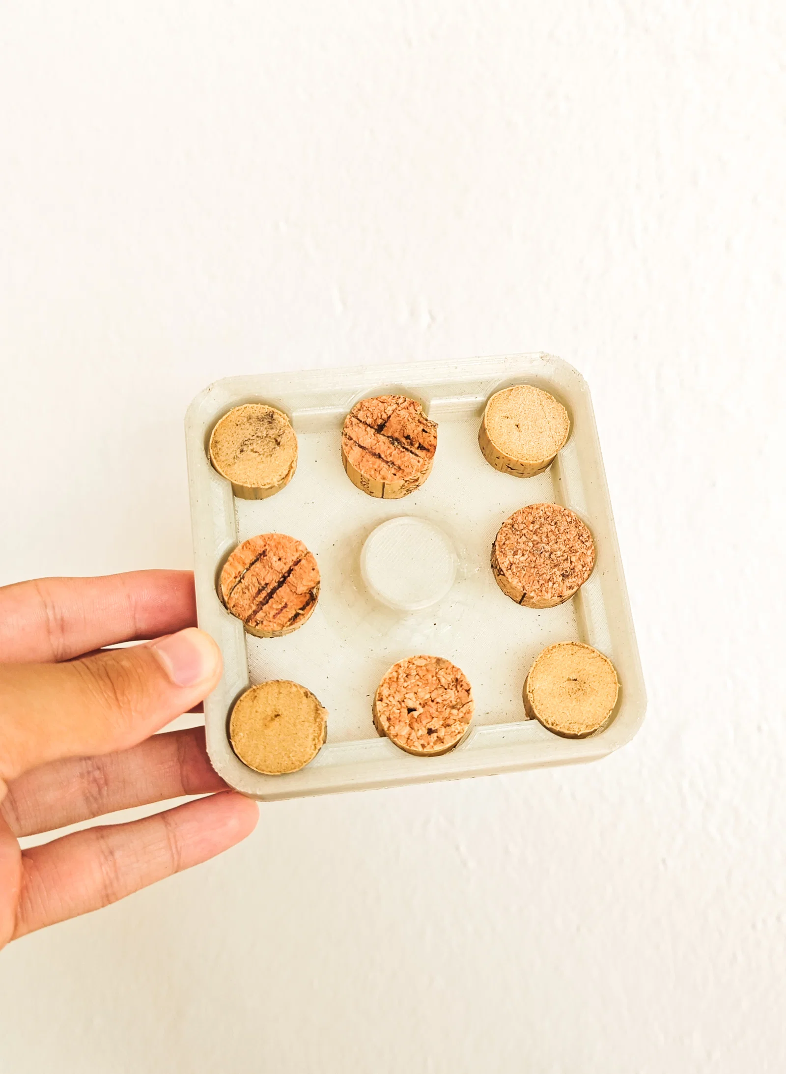 Để lắp ráp, bạn chỉ cần in phần thân và khay. Thiết kế có sẵn các khe rãnh để bạn gắn những mảnh nút bần đã cắt (bạn có thể tận dụng từ các nút chai rượu vang cũ ở nhà). Hãy cắt mỗi nút bần thành 4 đến 5 miếng (bạn cần tổng cộng 9 nút). Một số miếng có thể tự khớp vào vị trí, nhưng với các miếng còn lại, bạn nên dùng thêm một chút keo dán.