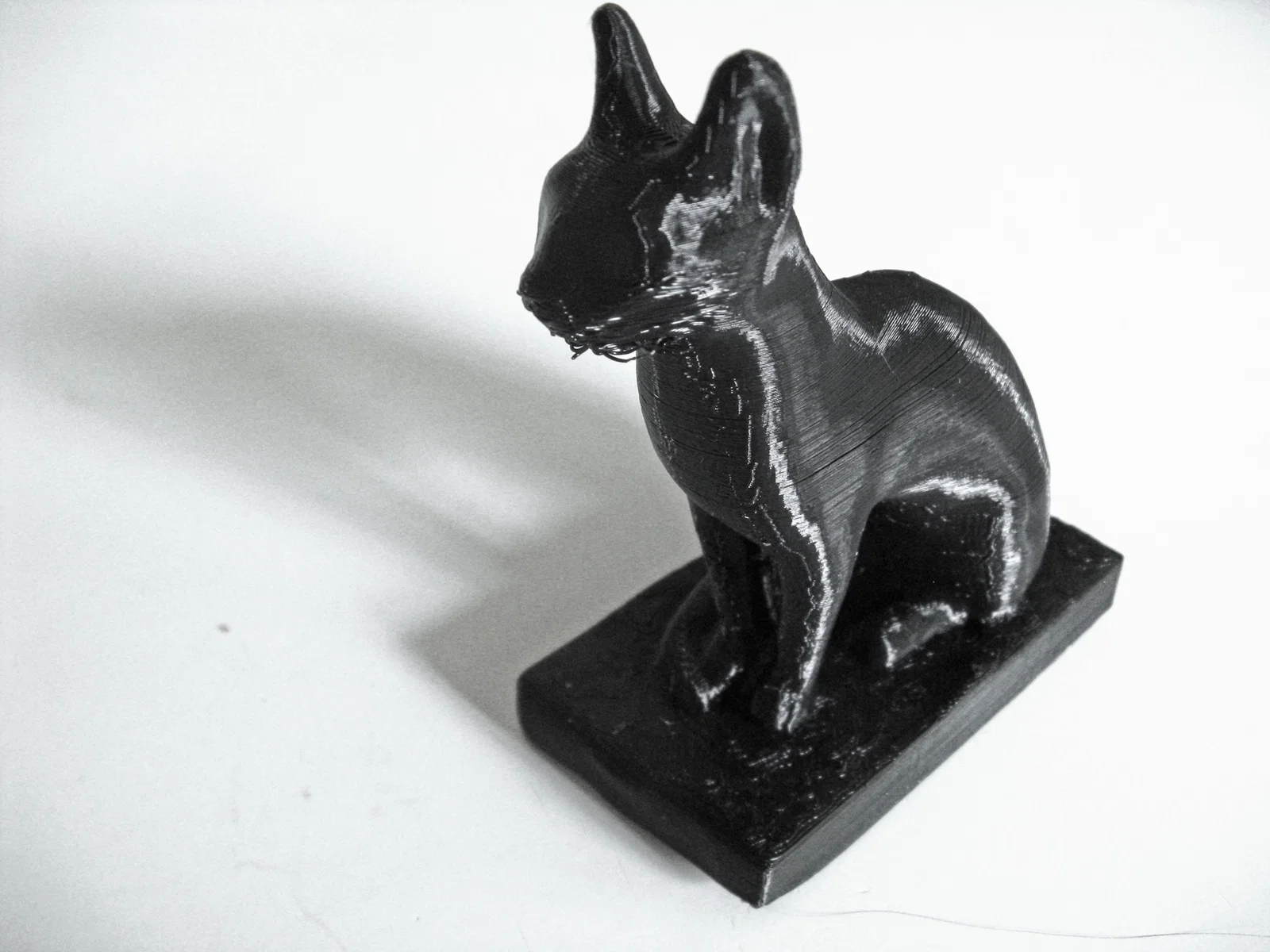 Bản quét Digitizer từ mô hình chuẩn của một bức tượng mèo Ai Cập thuộc Walters Art Gallery. Bản in trong ảnh được thực hiện mà không dùng support, nên phần cằm hơi bị xệ một chút. Đã in thành công bằng nhựa PLA trên máy Flashforge Creator (tuy nhiên nếu in kèm support thì sản phẩm sẽ hoàn thiện hơn).