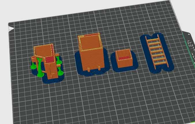 - Độ bám dính: Vì các chi tiết có diện tích tiếp xúc nhỏ, bạn bắt buộc phải dùng thêm một lớp "thick brim" (viền dày) để giữ cố định, tránh hiện tượng cong vênh (warping) trong quá trình in.