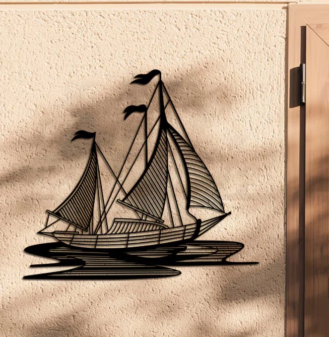 Sản phẩm được thiết kế với phong cách thanh mảnh, tập trung vào những đường nét uốn lượn của cánh buồm và thân thuyền. Đây không chỉ là một món đồ trang trí đơn thuần mà còn thể hiện gu thẩm mỹ tinh tế của người sở hữu. Với trọng lượng nhẹ và thiết kế phẳng, việc lắp đặt lên tường trở nên rất dễ dàng bằng cách sử dụng băng dính hai mặt chuyên dụng hoặc móc treo tường nhỏ. Sự kết hợp giữa hình khối và ánh sáng tự nhiên sẽ tạo ra những bóng đổ rất nghệ thuật trên bề mặt tường, làm cho chiếc thuyền trông như đang thực sự chuyển động trên mặt nước.