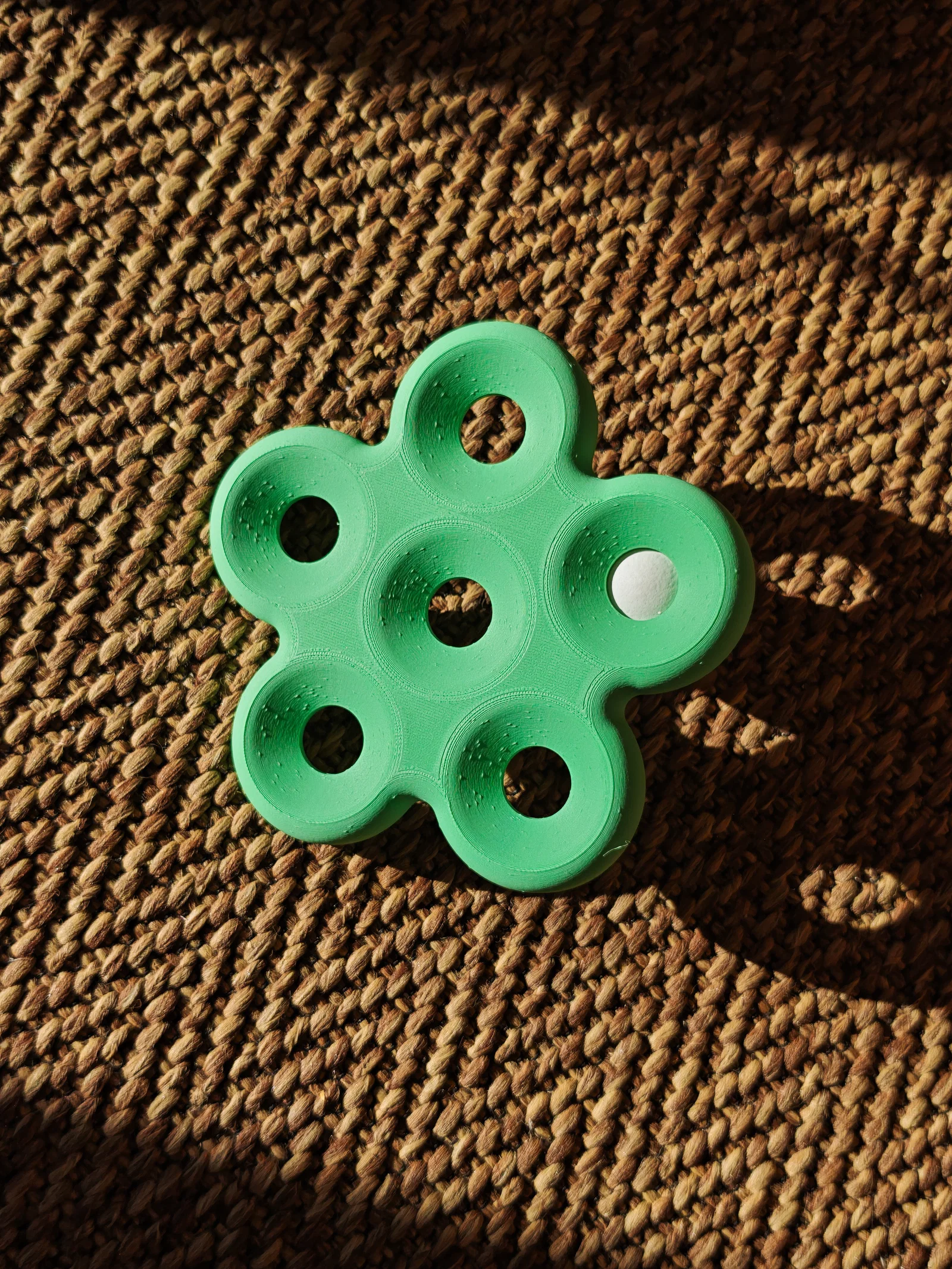 Thiết kế này có sáu ngăn: một ngăn ở giữa và năm ngăn xung quanh như những cánh hoa, tạo nên một bố cục hoa cân đối. Sản phẩm này biến những quả trứng bình thường thành một món đồ trang trí, mang lại màu sắc, sự đối xứng và tính thẩm mỹ sinh động hơn nhiều so với các khay đựng trứng truyền thống.