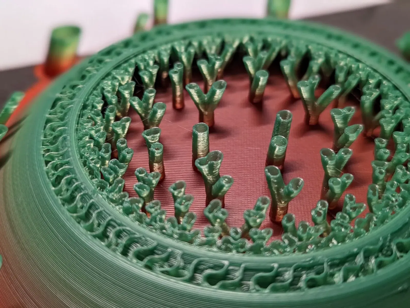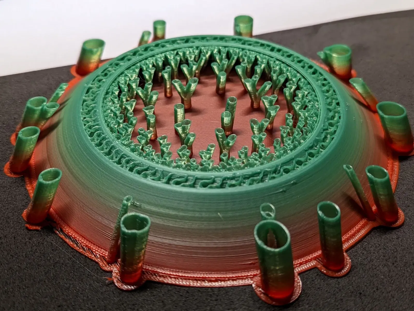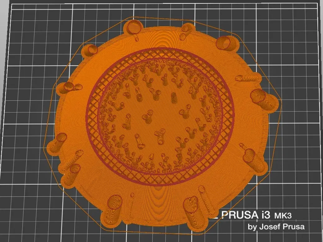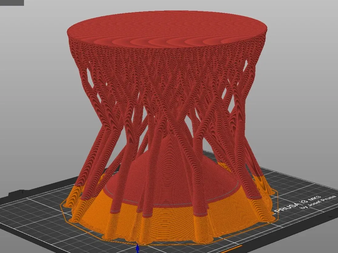 Quan trọng: toàn bộ mô hình không nên được in… trừ khi bạn thực sự, thực sự muốn. Một lần dừng hoặc thay đổi màu sắc khoảng lớp 60 cung cấp cơ hội để dừng in. Mô hình chưa in tồn tại hoàn toàn để cung cấp các bề mặt tạo ra các cấu trúc hỗ trợ trang trí.
