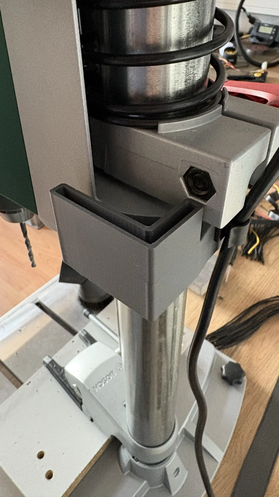 Máy khoan bàn Bosch PBD 40 được đi kèm với một thanh chặn góc (stop angle) giúp việc khoan trở nên dễ dàng hơn. Tuy nhiên, vấn đề duy nhất là không có nơi nào để cất giữ thanh chặn này ngay trên chính chiếc máy khoan. Đó chính là lý do giá đỡ này ra đời. Nó cung cấp một cách tiện lợi để cất giữ thanh chặn góc ngay trên máy khoan PBD 40 khi bạn không sử dụng đến.