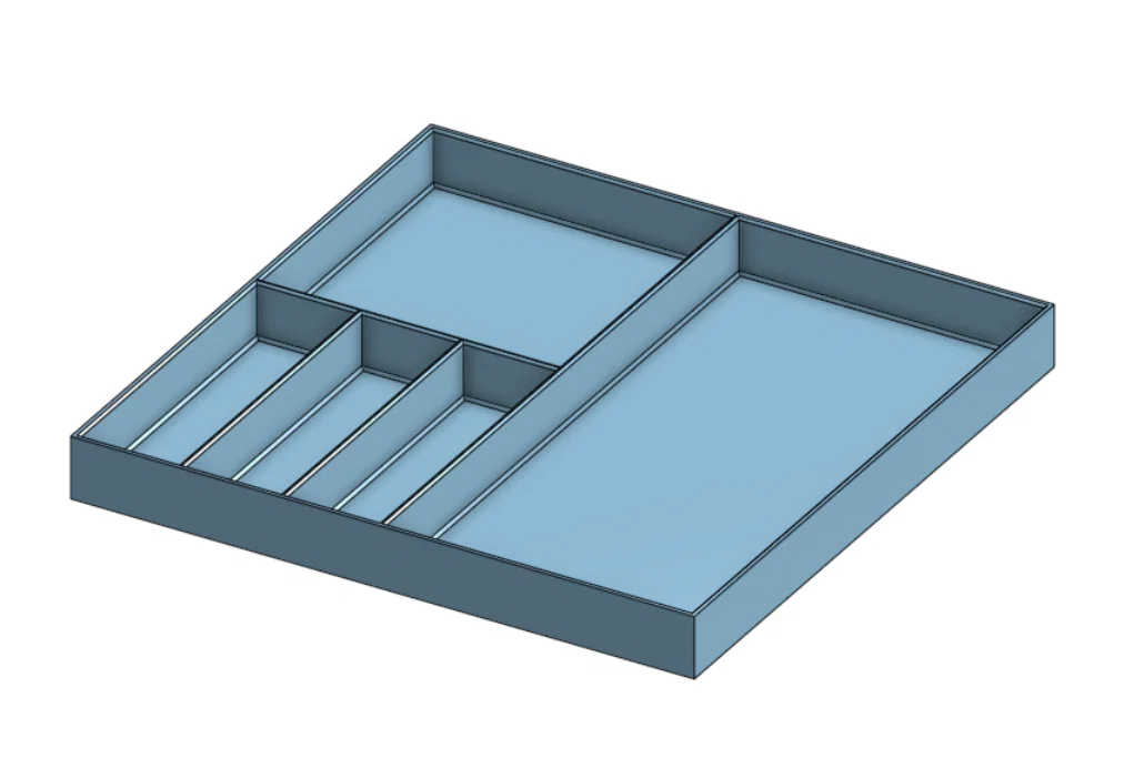 • Lưu ý sử dụng: Trước khi in, hãy kiểm tra kỹ kích thước khay so với ngăn kéo của bạn để đảm bảo vừa vặn tuyệt đối. Bạn cũng có thể cân nhắc dán thêm một lớp chống trượt ở đáy nếu đặt khay trên bề mặt nhẵn.