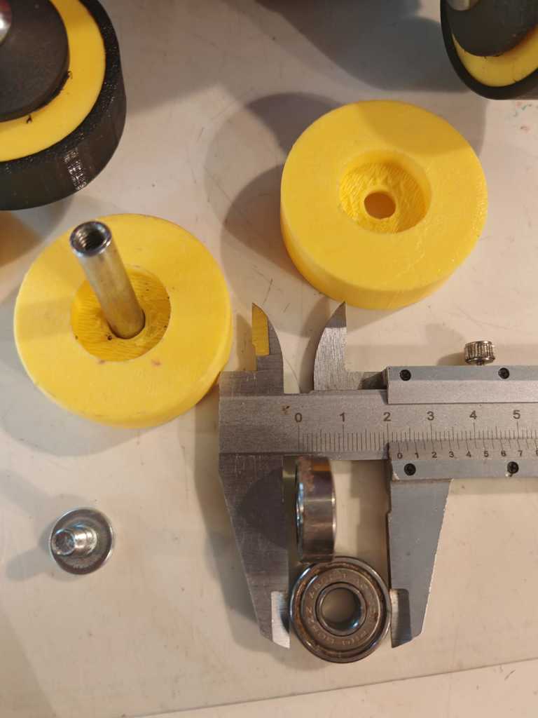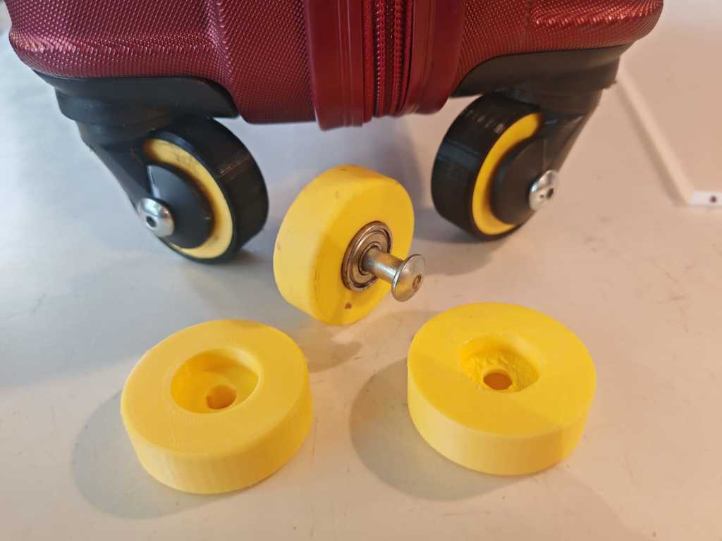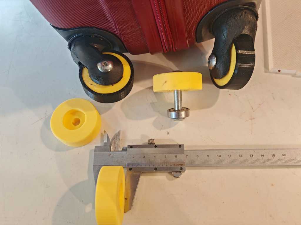 Bạn đang cần thay bánh xe vali đã mòn? Đây là mẫu bánh xe tự in dùng kèm vòng bi và bu-lông từ giày trượt patin cũ. Bánh xe in bằng PLA và lốp bằng TPU, bền bỉ cho vali 39 lít. Kích thước bánh 48mm, lốp 52mm dễ dàng lắp đặt thay thế.