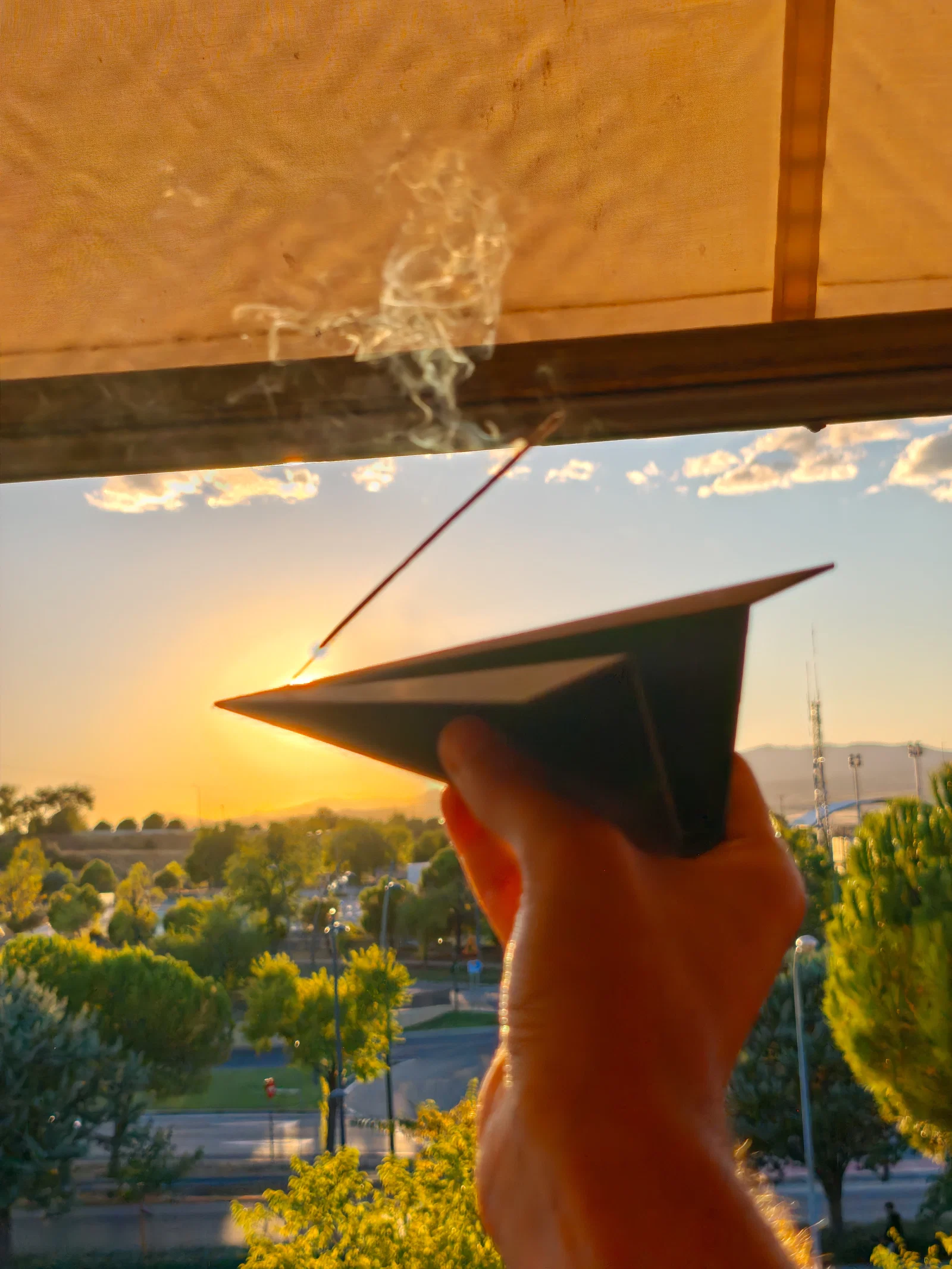 Một chiếc đế cắm nhang mang phong cách tối giản, lấy cảm hứng từ hình ảnh chiếc máy bay giấy đầy hoài niệm. Được thiết kế để đặt nhẹ nhàng trên bàn như vừa mới hạ cánh, sản phẩm có một lỗ nhỏ ở phần mũi để giữ que nhang. Độ nghiêng của que nhang giúp tàn nhang rơi gọn gàng vào nếp gấp giữa thân máy bay, kết hợp hoàn hảo giữa công năng sử dụng cùng vẻ ngoài tinh tế, thú vị. Đây là lựa chọn tuyệt vời cho những ai yêu thích thiết kế, tìm kiếm một điểm nhấn thông minh và mới lạ cho các vật dụng thường ngày.