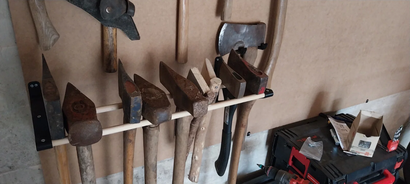 Mẫu giá treo tường đơn giản và tiện dụng dành cho rìu của bạn, sử dụng kết hợp với hai thanh tròn đường kính 16mm. Một giải pháp lưu trữ ngăn nắp, chắc chắn cho không gian làm việc hoặc gara của bạn.