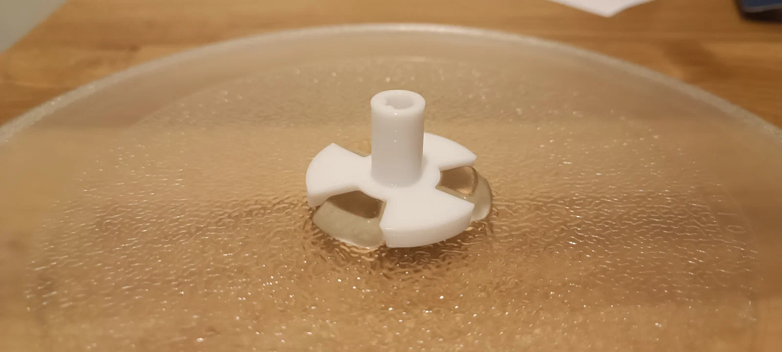 Mình có mua một chiếc đĩa xoay thay thế cho lò vi sóng GE 731K nhưng trớ trêu thay, các gờ bên dưới đĩa lại cao hơn so với đĩa gốc. Thế là mình phải tự xoay xở làm lại cái khớp nối này.