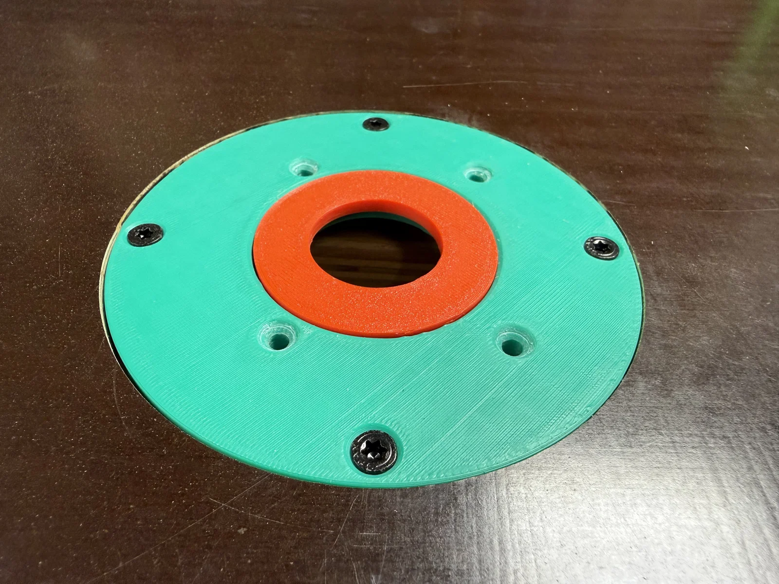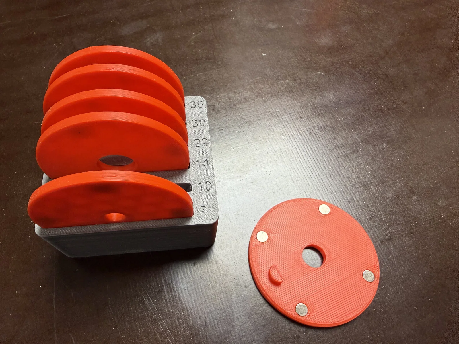 Tấm đế lắp đặt giúp bạn sử dụng máy phay cạnh chạy pin Einhell như một chiếc máy phay bàn. Ngoài ra còn có khay chứa riêng cho các vòng giảm chấn. Bạn cần chuẩn bị tổng cộng 28 nam châm đường kính 5mm, dày 2mm. Phần lõm trên tấm đế cần có độ sâu 8mm và đường kính 115mm. Sử dụng dụng cụ phay tròn sẽ giúp công việc dễ dàng hơn nhiều. Cố định bằng ốc vít đầu bằng (trong trường hợp của tôi là 4x20, tùy thuộc vào độ dày tấm đế của bạn). Ý tưởng cơ bản dựa trên hệ thống của Jochen222 dành cho máy phay bàn Makita (https://www.thingiverse.com/thing:4485750). Tuy nhiên, vì thiết kế đó không thể áp dụng trực tiếp cho máy phay Einhell, mình đã phải thiết kế lại hoàn toàn. Dù nhìn có vẻ giống nhau nhưng hai hệ thống này không tương thích với nhau.