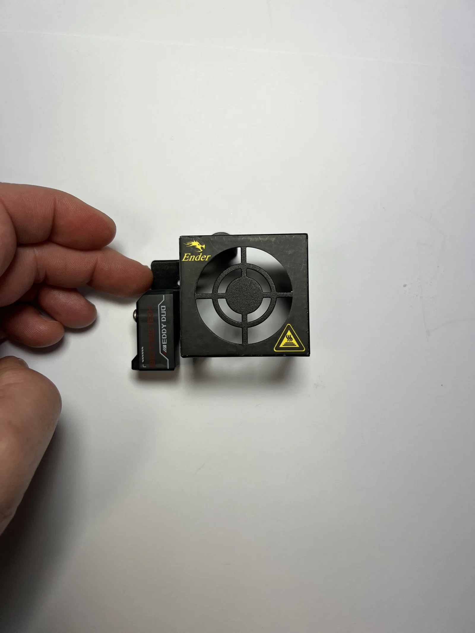Ngàm gắn Eddy probe được cải tiến thêm 3mm rãnh trượt để điều chỉnh độ cao lên xuống linh hoạt, giúp bạn dễ dàng căn chỉnh offset chính xác với đầu phun so với ngàm gốc trên Ender 3 Pro.