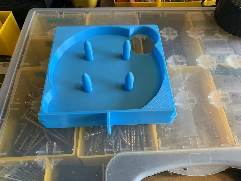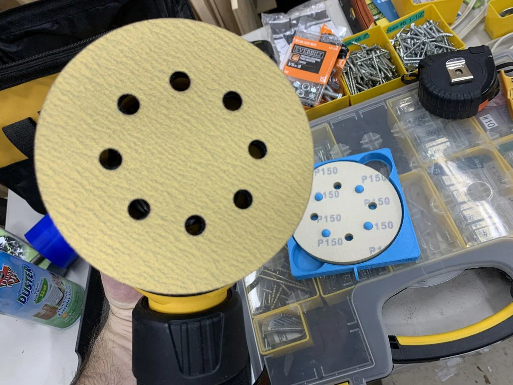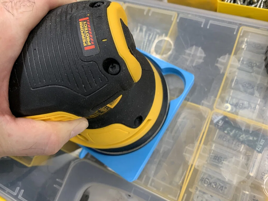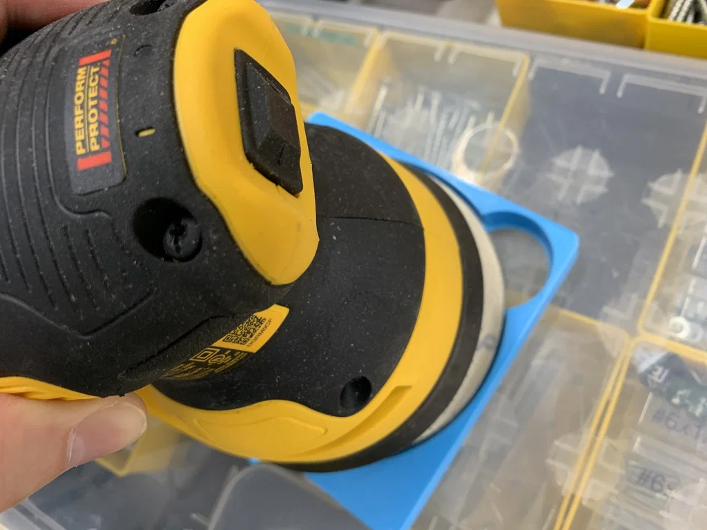 Phiên bản nâng cấp của hộp đựng giấy nhám 5 inch với thiết kế tối ưu, tiết kiệm nhựa và thời gian in. Bổ sung thêm ngăn, chốt căn chỉnh tiện lợi và tay cầm cải tiến để dễ dàng lấy đĩa nhám và lắp đặt vào máy chà nhám.