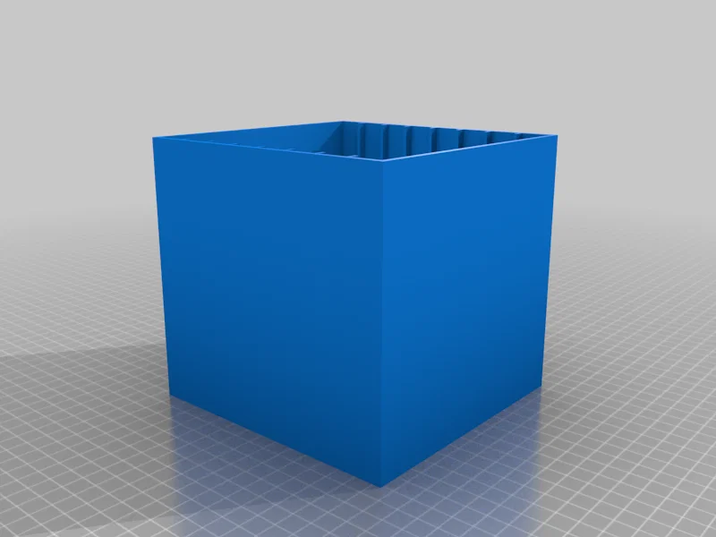 Tôi đã chỉnh sửa phần hộp bên ngoài để thêm hai ngăn kệ (chủ yếu là để tận dụng tối đa không gian nơi tôi lắp đặt nó). Tôi cũng đã khoét bớt phần giữa để tiết kiệm nhựa và giảm gần một nửa thời gian in. Phần gờ còn lại vẫn đủ để ngăn kéo trượt ra vào trơn tru như bình thường.