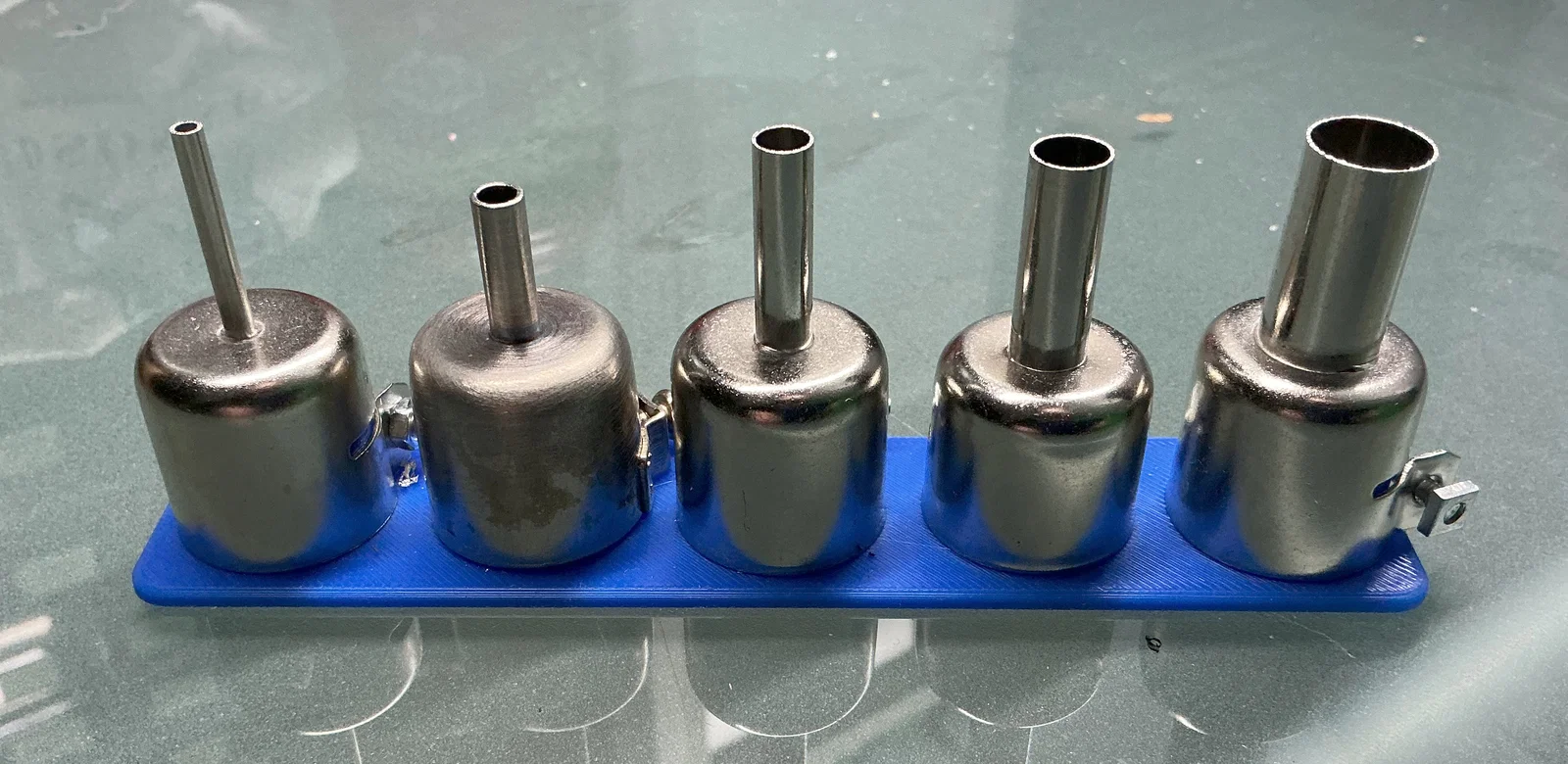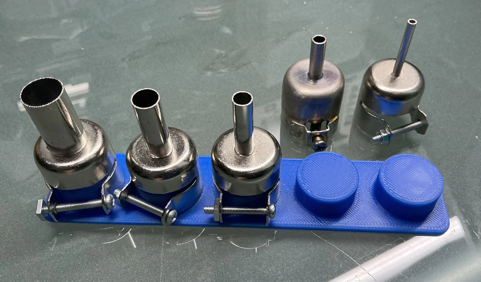 Đế giữ 5 vị trí dành cho đầu khò nhiệt của trạm khò Aoyue 888A với đường kính trong 21.5mm. Sản phẩm dễ dàng in ấn bằng nhiều loại nhựa khác nhau, giúp bàn làm việc của bạn gọn gàng và khoa học hơn.