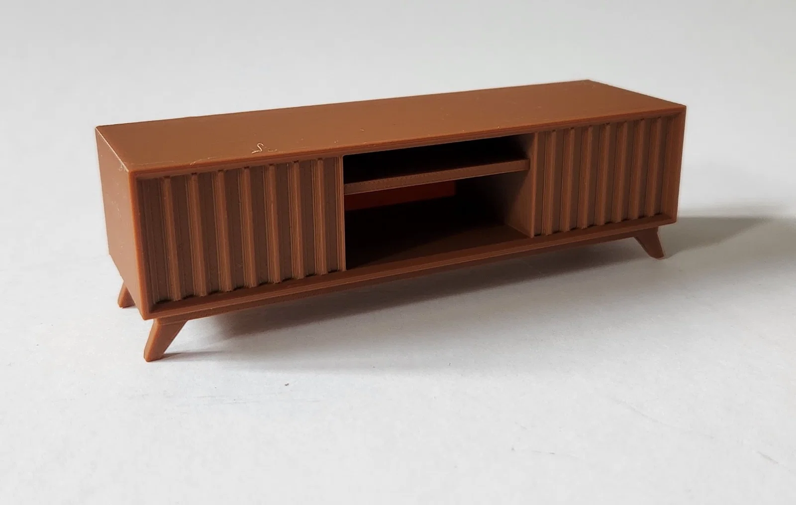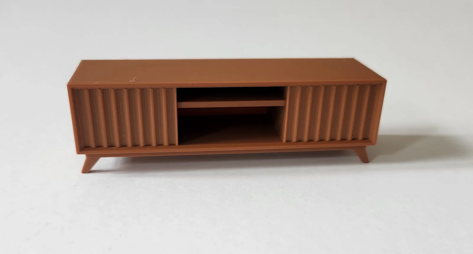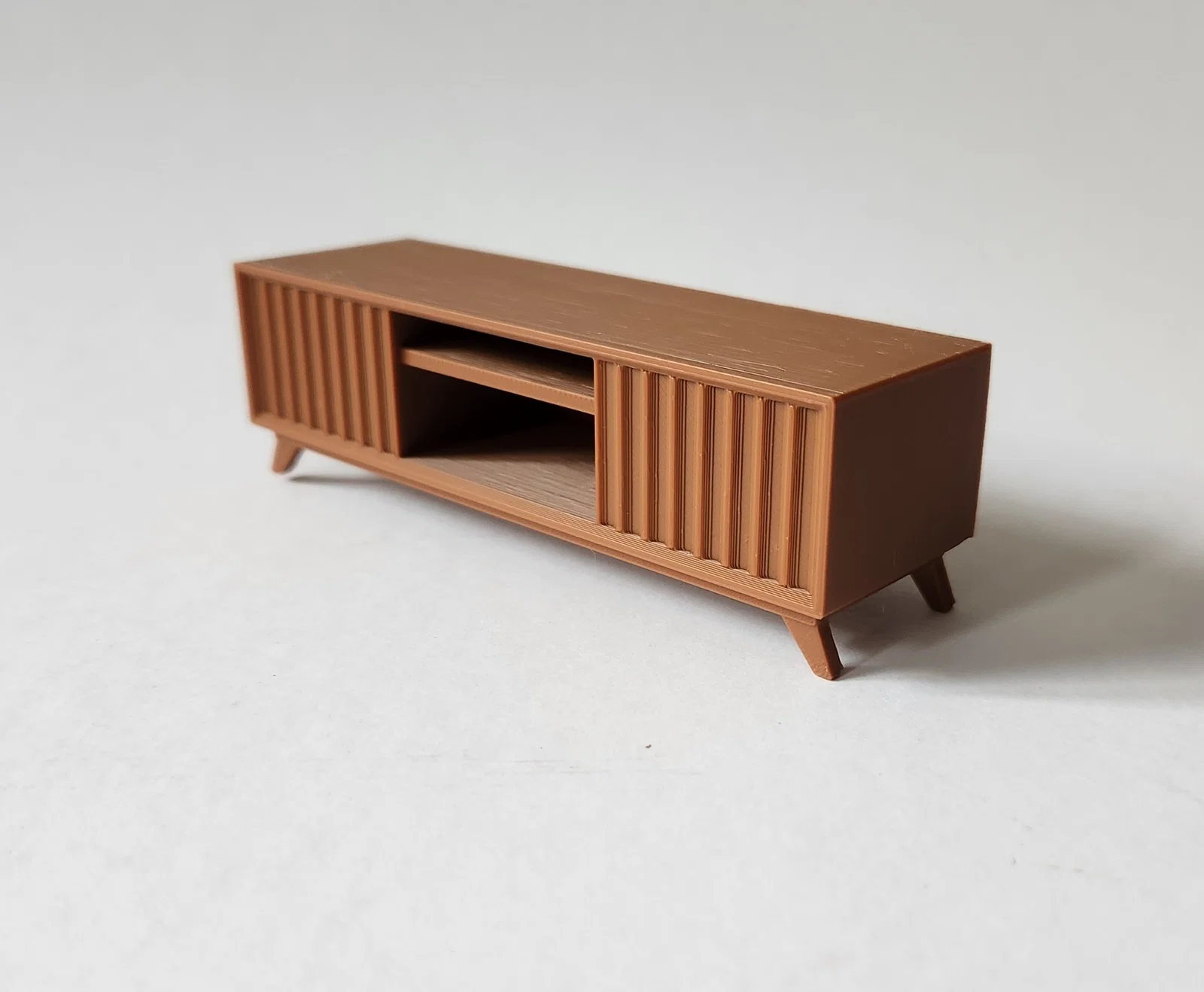 Nếu anh chị đang tìm kiếm những món đồ nội thất nhỏ xinh để trang trí cho ngôi nhà búp bê hoặc làm mô hình kiến trúc, thì chiếc tủ tivi JestO này chính là một lựa chọn cực kỳ tuyệt vời. Được thiết kế với tỉ lệ 1:10 chuẩn xác, sản phẩm mang đến vẻ ngoài hiện đại và tinh tế, giúp không gian trưng bày mô hình của anh chị trở nên sống động và chân thực hơn bao giờ hết. Từng chi tiết từ chân tủ cho đến các khe rãnh ở mặt trước đều được thể hiện rõ ràng, tạo cảm giác sang trọng như một món đồ nội thất thật.