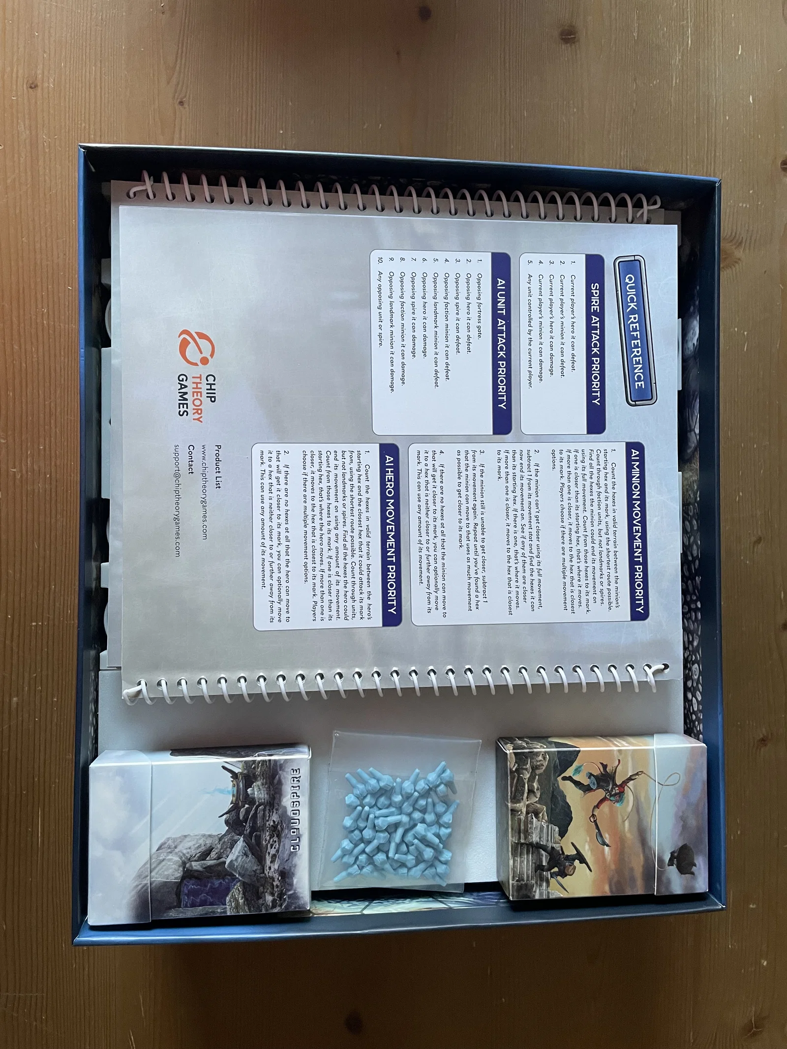 Khay in 3D tối ưu cho Cloudspire, hỗ trợ tất cả các bản mở rộng (2026). Thiết kế thông minh giúp lưu trữ được nhiều sách luật và kịch bản, giúp không gian bàn cờ của bạn gọn gàng và khoa học hơn bao giờ hết.