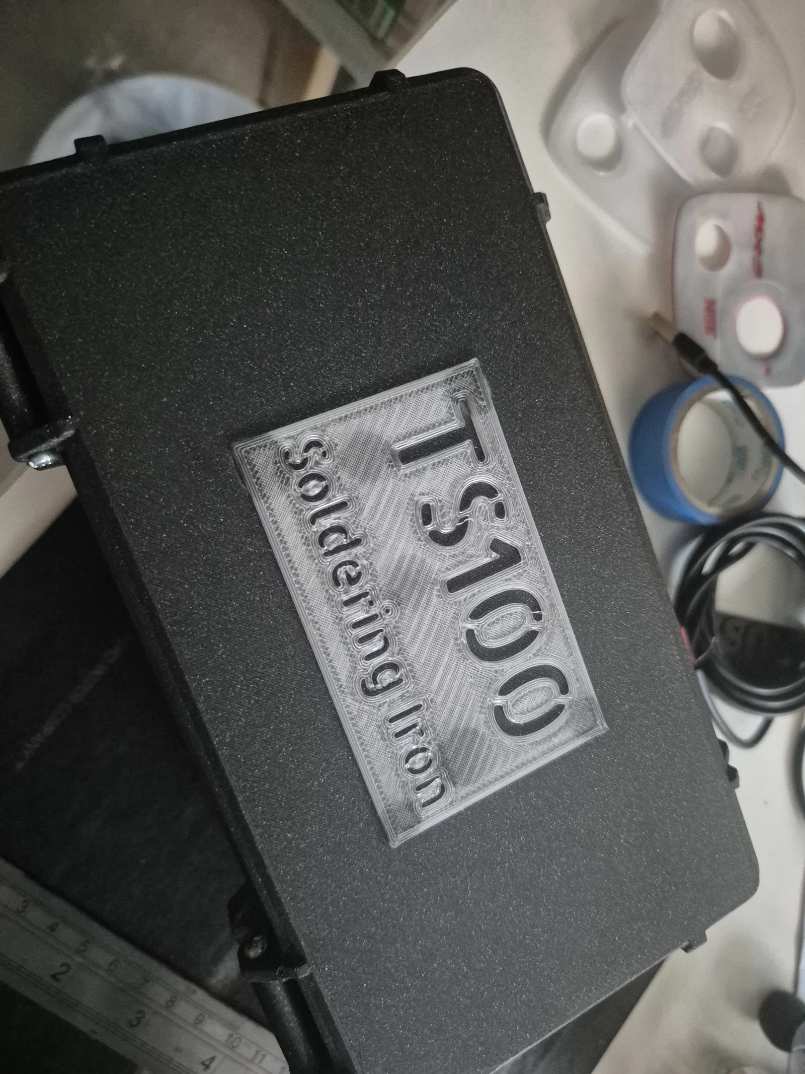 - Tùy chỉnh: Nếu muốn, bạn có thể in bằng hai màu nhựa khác nhau (nếu máy in hỗ trợ thay filament) để phần chữ "TS100" nổi bật hơn so với nền, tạo hiệu ứng thị giác ấn tượng.