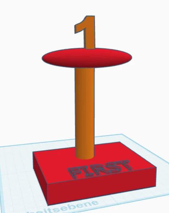 Sản phẩm được thiết kế với phần đế vững chãi, phía trên khắc nổi chữ "FIRST" thể hiện vị trí dẫn đầu. Điểm nhấn của mô hình là cột trụ đứng thẳng, đỡ lấy một vòng tròn cách điệu và con số "1" đầy kiêu hãnh. Với cấu trúc đơn giản, bạn hoàn toàn có thể dễ dàng in 3D mô hình này tại nhà mà không cần lo lắng về việc tạo hỗ trợ (support) quá phức tạp. Đây chắc chắn sẽ là món quà "ghi điểm" tuyệt đối trong mắt bạn bè và người thân.