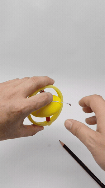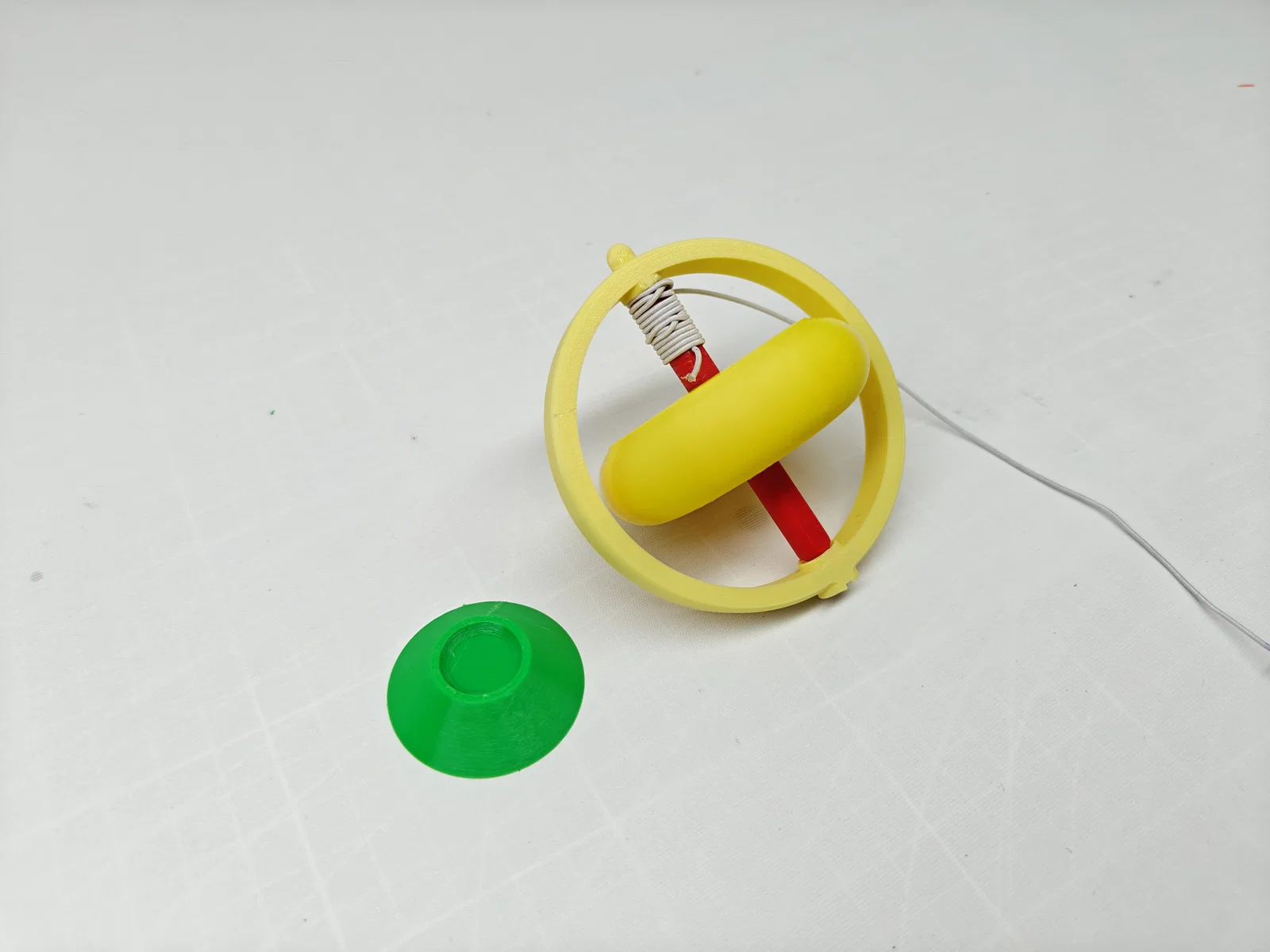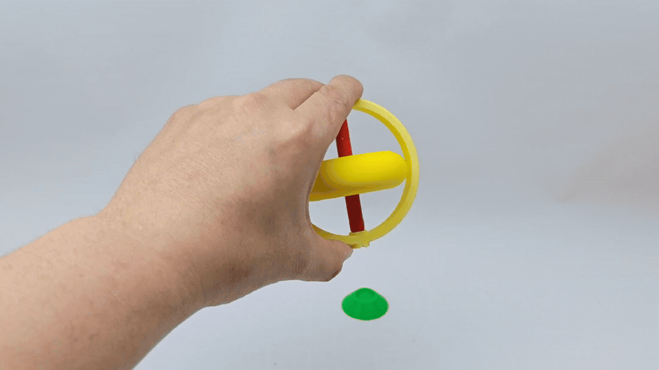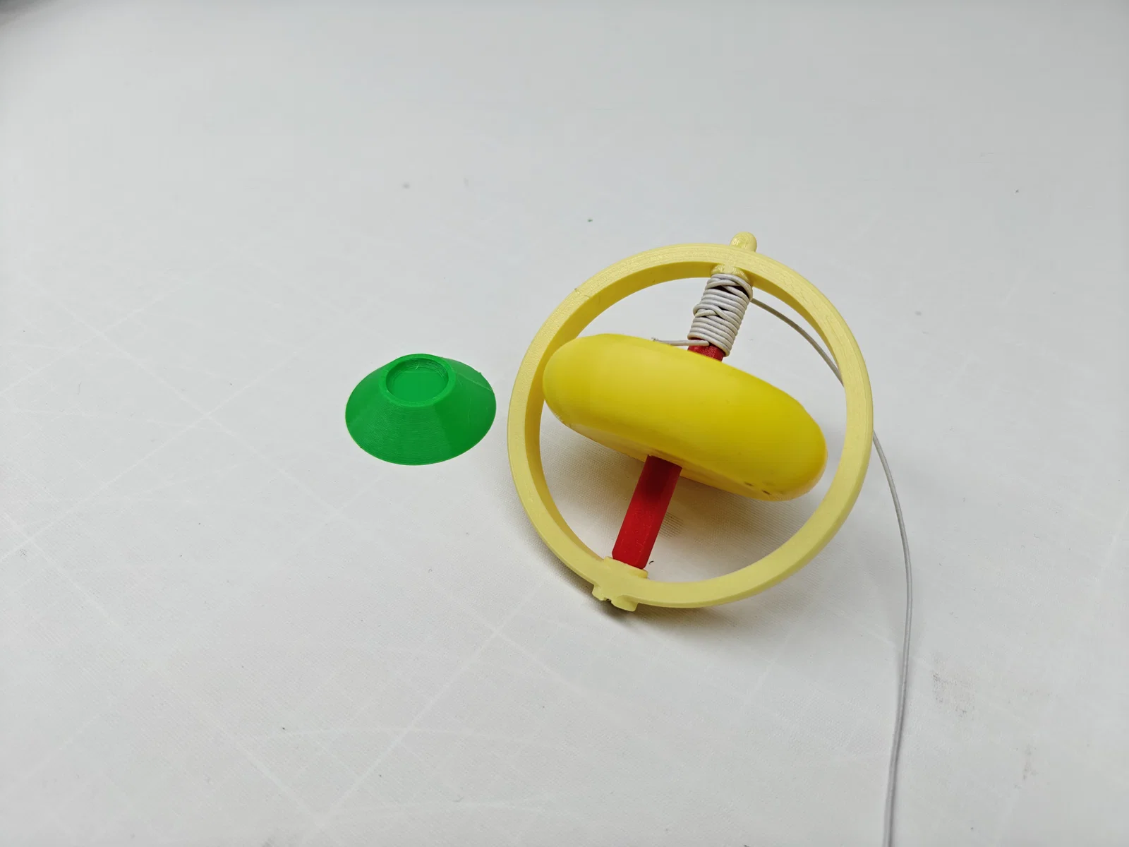 Chỉ cần lắp ráp đơn giản sau khi in. Nếu phần trục và cánh quạt bị lỏng, bạn có thể dùng một ít keo dán. Để chơi, hãy xỏ một sợi dây có đường kính khoảng 1mm qua trục, quấn vài vòng rồi giật mạnh để làm con quay xoay. Khi đã quay, bạn có thể đặt con quay lên đầu bút, đế hoặc thậm chí là trên sợi dây, nó sẽ tiếp tục quay ổn định. Hãy đặt mặt có rãnh lên sợi dây để con quay có thể trượt dọc theo dây.