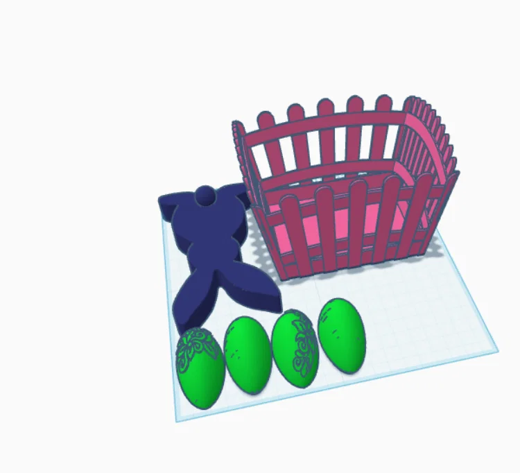 - Thiết kế tối ưu: Bộ mô hình được chia tách các phần riêng biệt như giỏ, thỏ và trứng, giúp việc in ấn dễ dàng và không cần quá nhiều hỗ trợ (support).