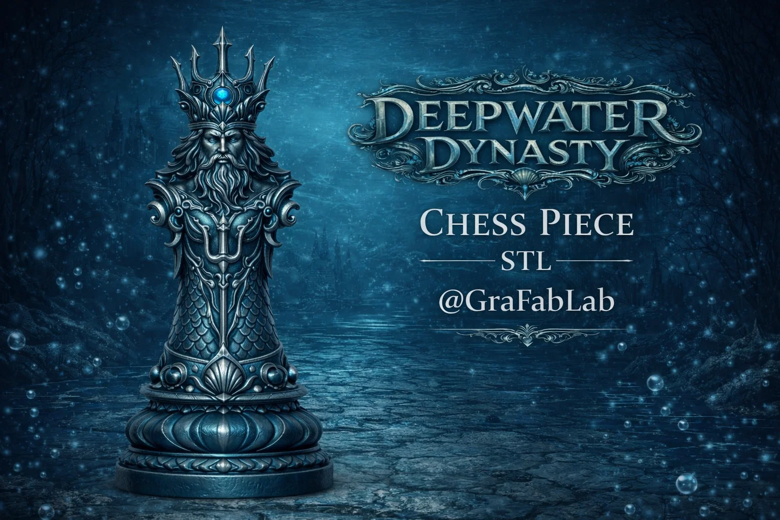 Khám phá quân Vua đầy uy quyền của bộ Deepwater Dynasty, được chế tác tỉ mỉ với lớp giáp như loài thủy quái cổ đại cùng quả cầu biểu tượng của vực thẳm. Mẫu in 3D hoàn hảo cho bộ cờ của bạn.