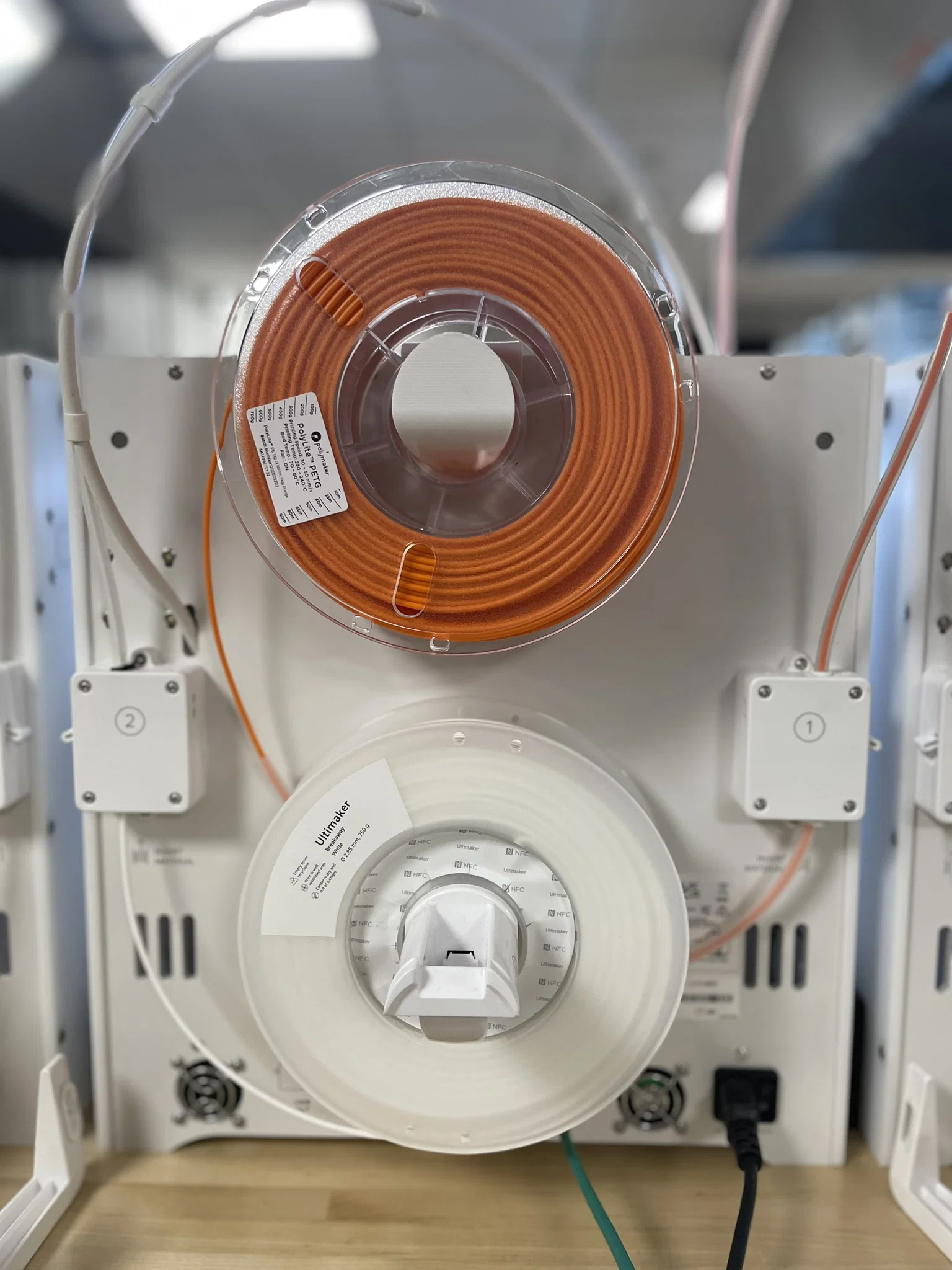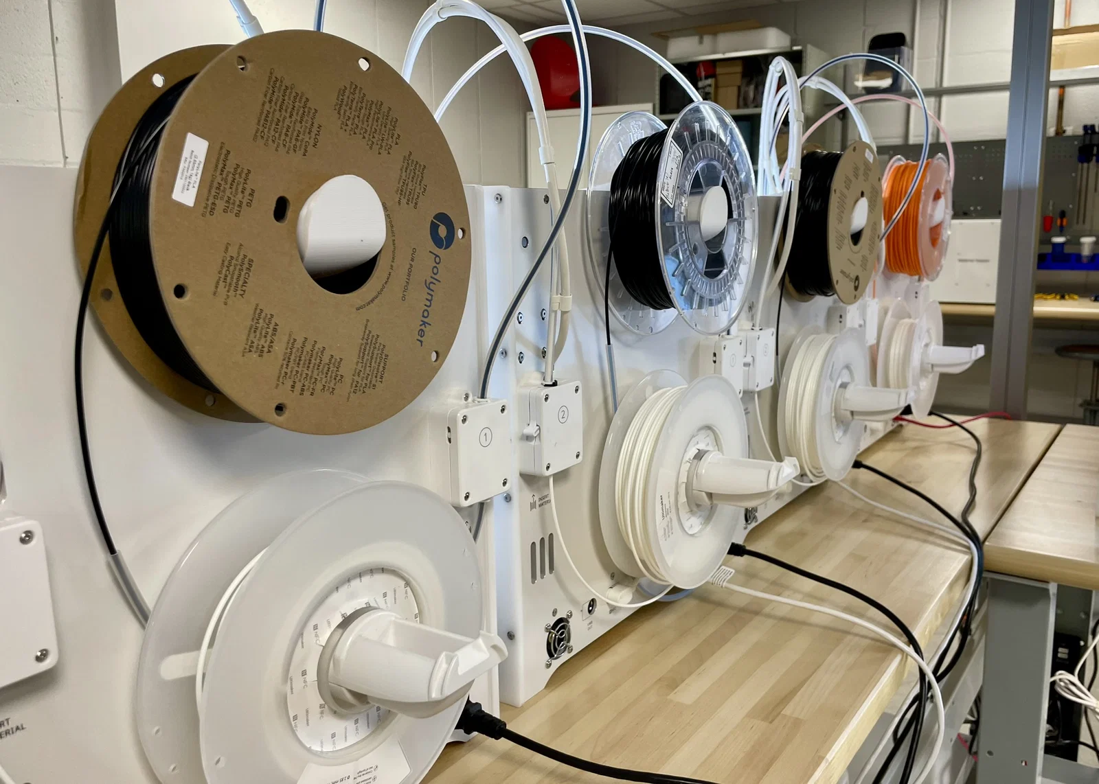 Giá đỡ cuộn nhựa Ultimaker S3 cho các loại sợi nhựa phổ thông.