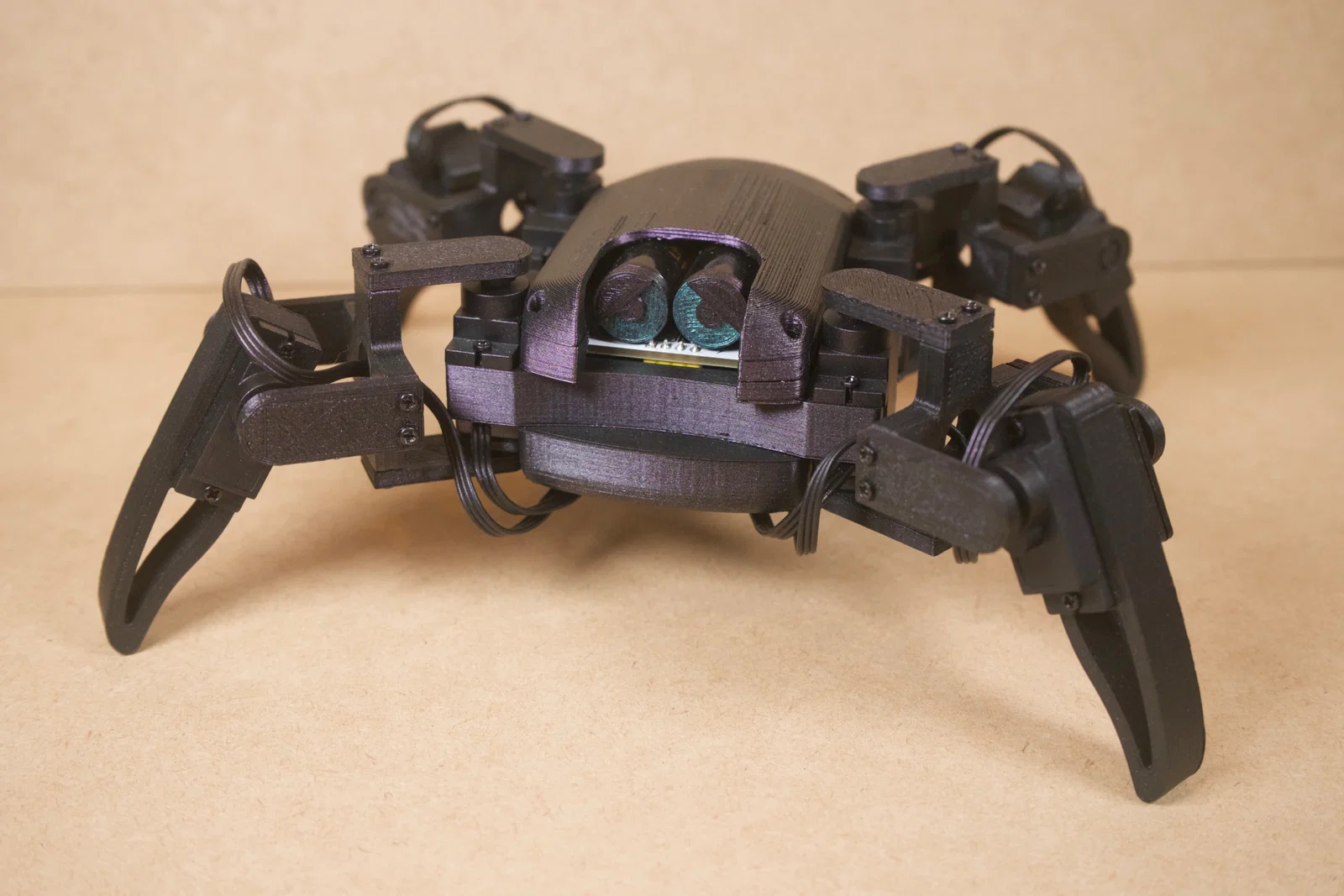 Robot sử dụng 8 động cơ servo (2 cái mỗi chân) để tạo ra các cử động giống như nhện thật, bao gồm đi bộ, xoay và tạo dáng.
